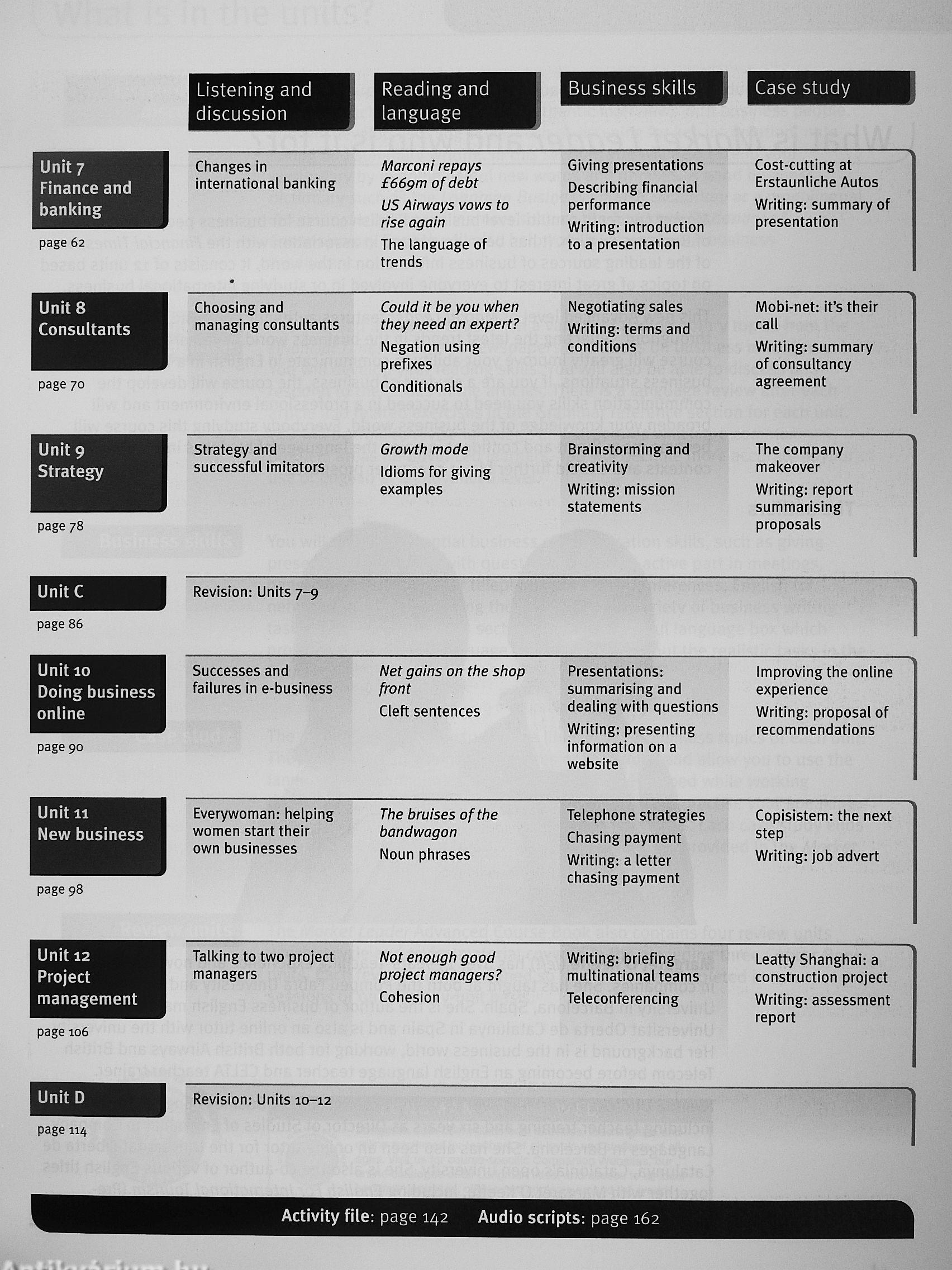 • Case studies in eacli Course Bool< unit for real practice of key business sl<ills