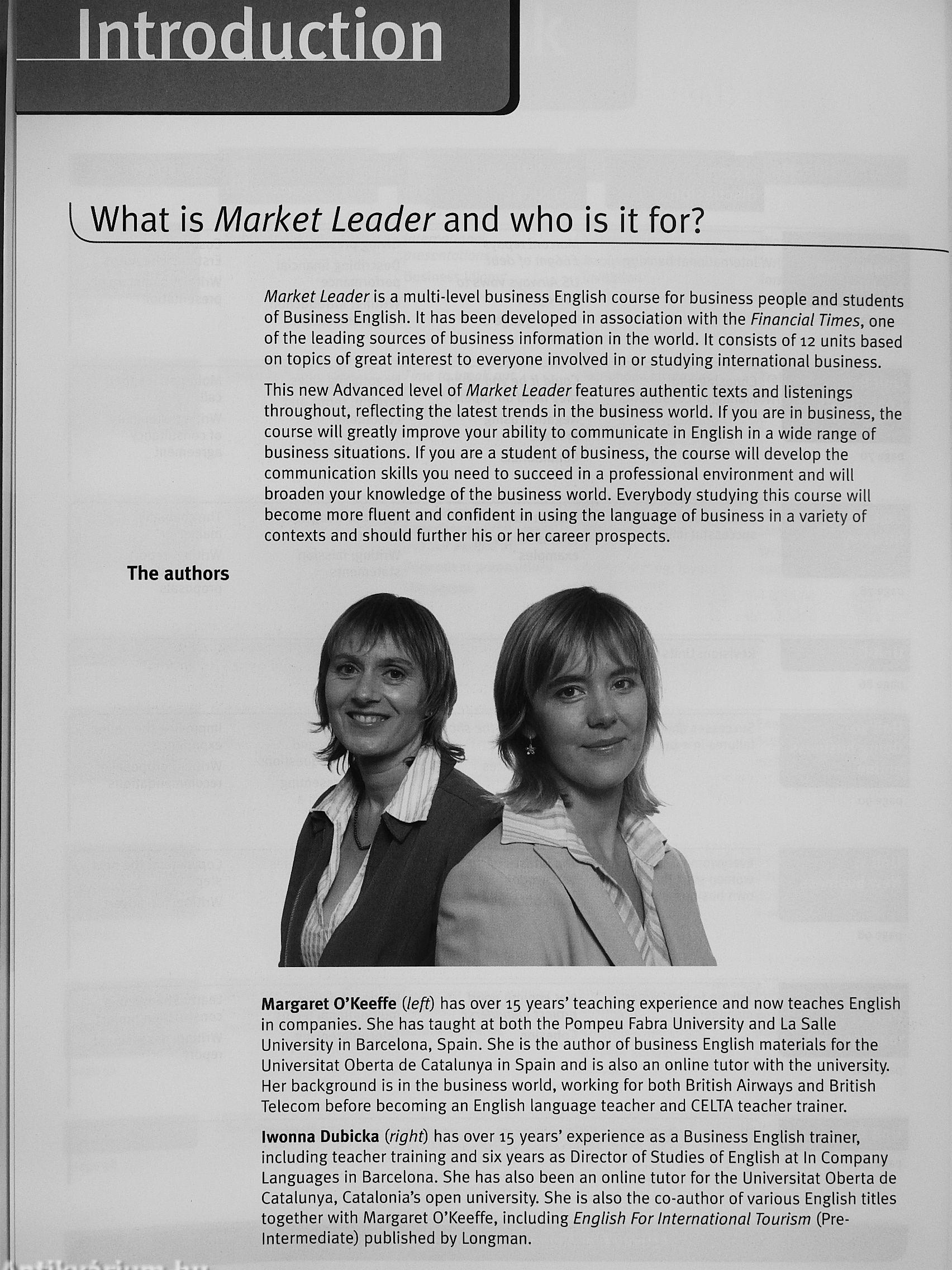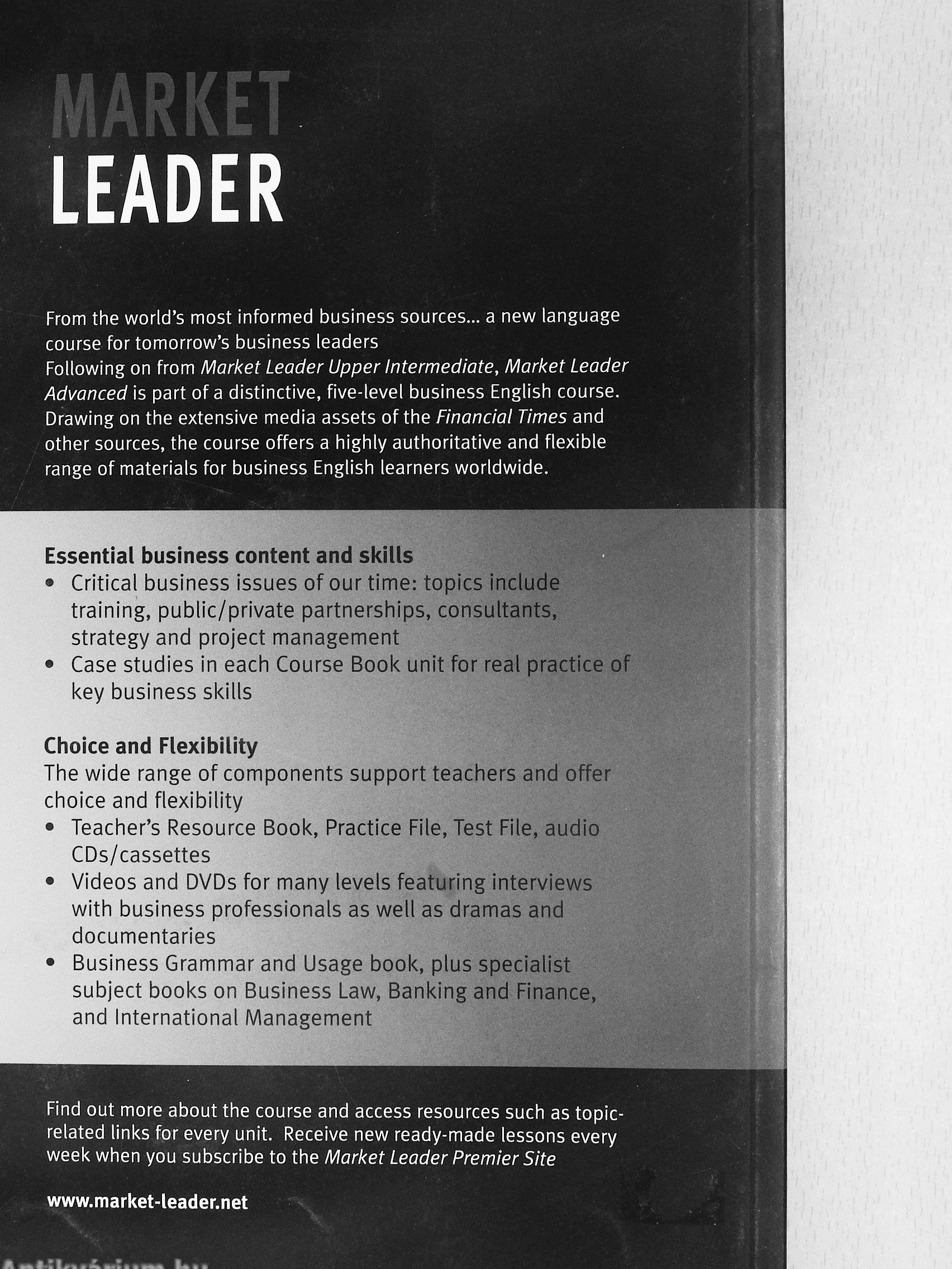 Following on from Market Leader Upper Intermediate, Market Leader Advanced is part of a distinctive, five-level business English course. Drawing on the extensive media assets of the Financial Times and other sources, the course offers a highly authoritative and flexible range of materials for business English learners worldwide.