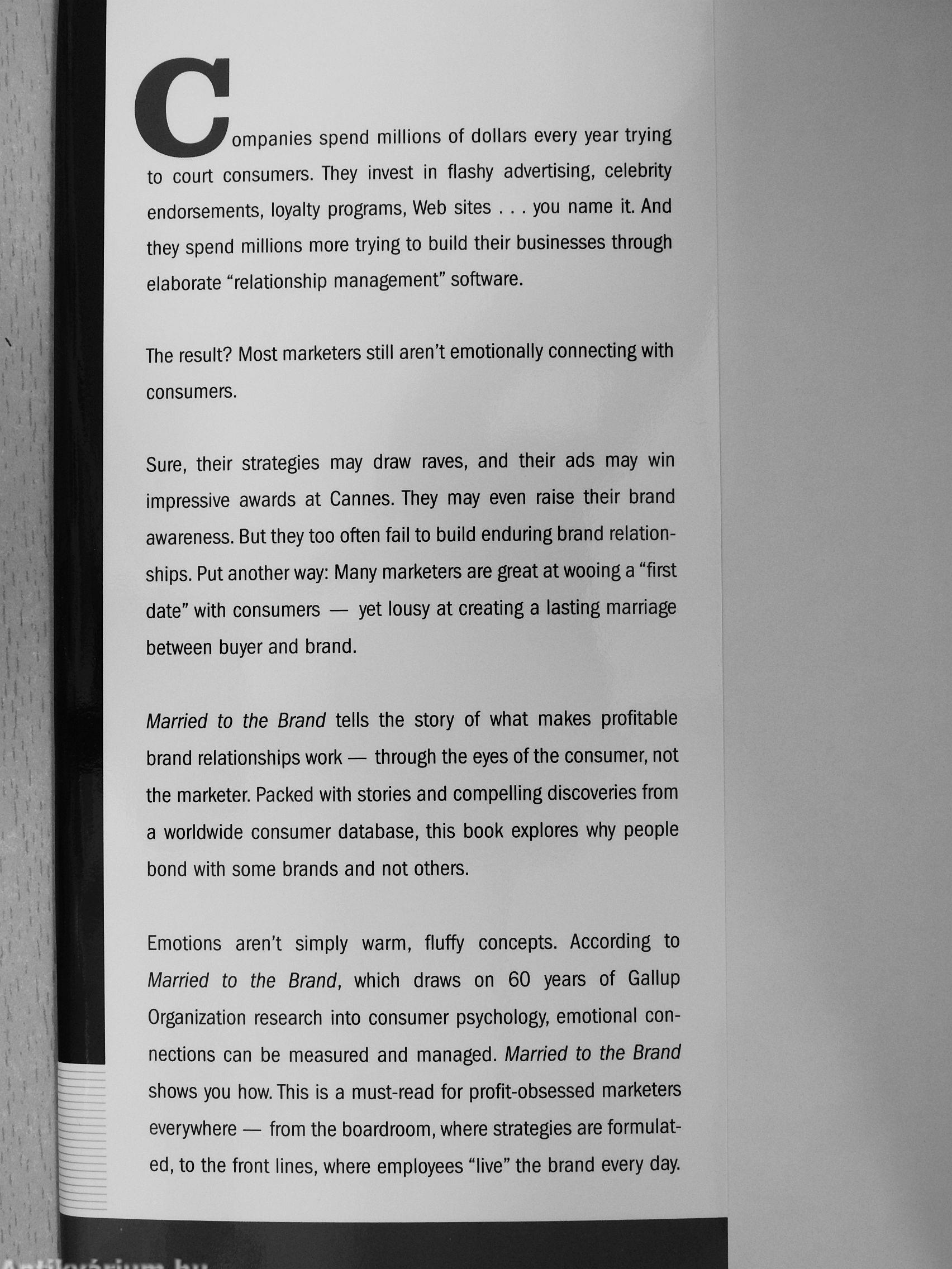 Emotions aren't simply warm, fluffy concepts. According to Married to the Brand, which draws on 60 years of Gallup Organization research into consumer psychology, emotional connections can be measured and managed. Married to the Brand shows you how. This is a must-read for profit-obsessed marketers everywhere — from the boardroom, where strategies are formulated, to the front lines, where employees "live" the brand every day.
