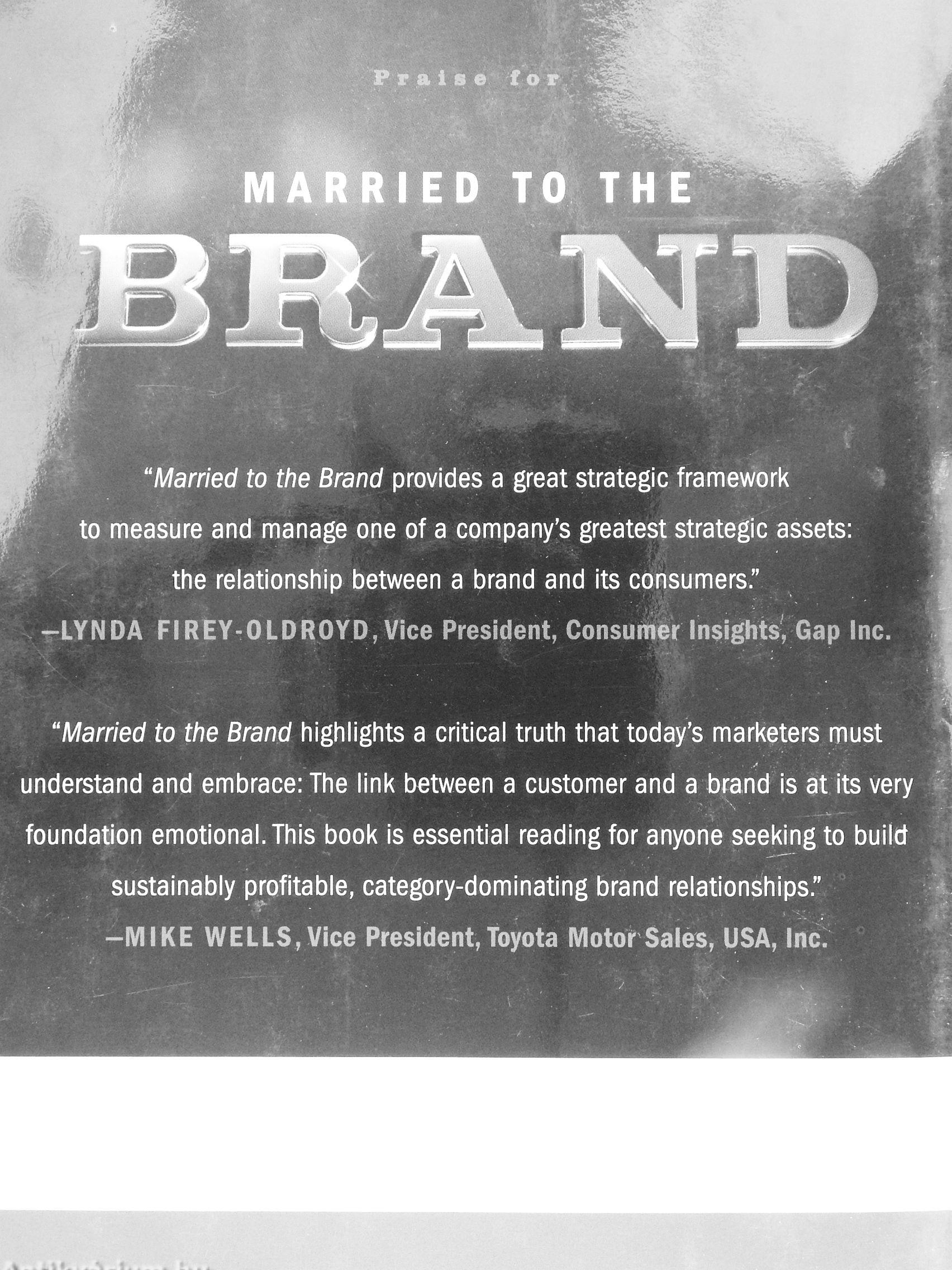 "Married to the Brand provides a great strategic framevrork ii to measure and manage one of a company's greatest strategic assets: the relationship between a brand and its consumers" ^LYNDA FIREY-OLDROYD,Vice President, Consumer Insights^Gap Inc.