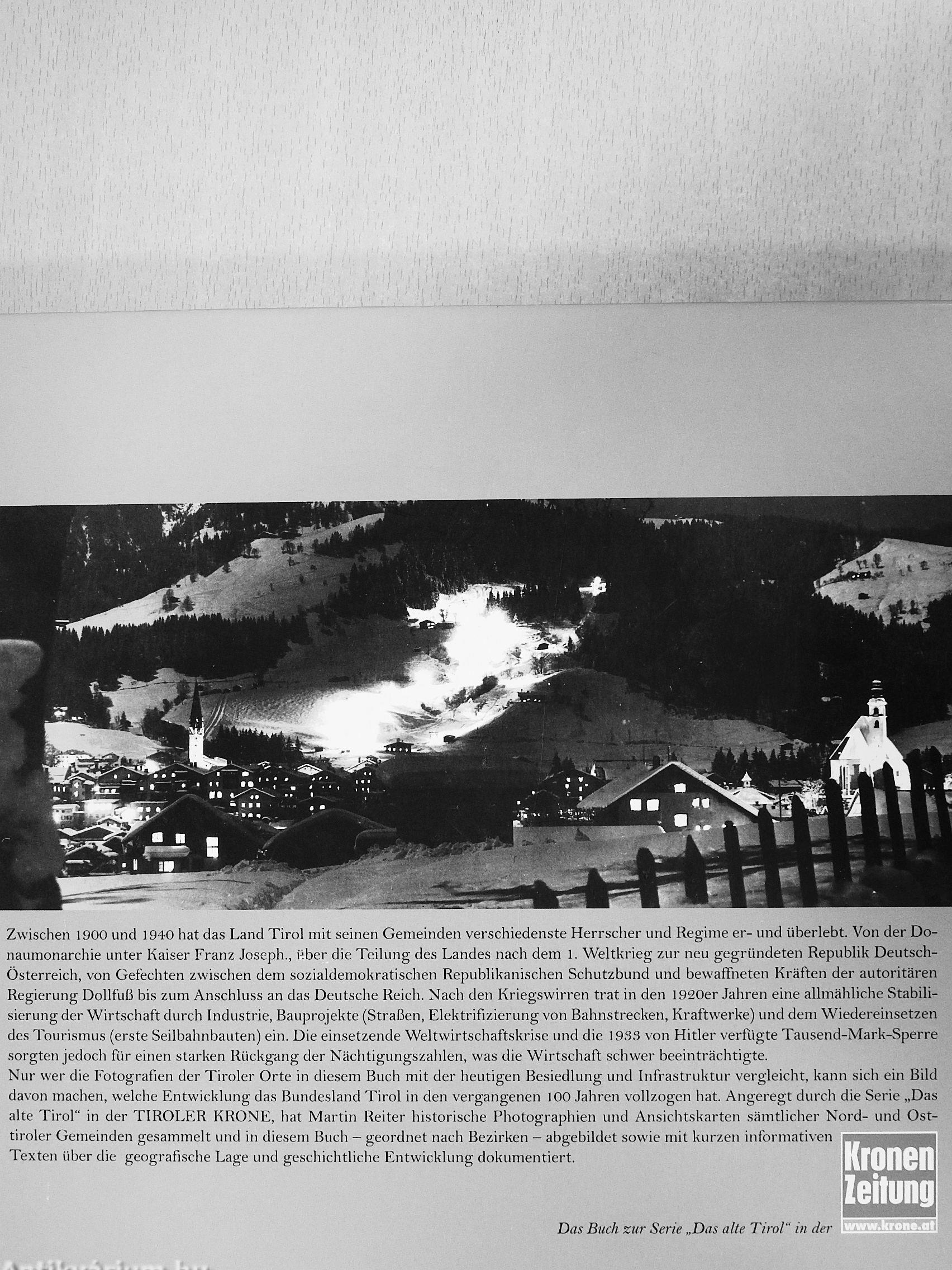 Zwischen 1900 und 1940 hat das Land Tirol mit seinen Gemeinden verschiedenste Herrscher und Regime er- und uberlebt. Von der Do-_'. naumonarchie unter Kaiser Franz Joseph., fiber die Teilung des Landes nach dem 1. Weltkrieg zur neu gegründeten Republik Deutsch-Österreich, von Gefechten zwischen dem sozialdemokratischen Republikanischen Schutzbund und bewaffneten Kräften der autoritären Regierung Dollfuß bis zuin Anschluss an das Deutsche Reich. Nach den Kriegswirren trat in den 1920er Jahren eine allmähliche Stabilisierung der Wirtschaft durch Industrie, Bauprojekte (Straßen, Elektrifizierung von Bahnstrecken, Kraftwerke) und dem Wiedereinsetzen des Tourismus (erste Seilbahnbauten) ein. Die einsetzende Weltwirtschaftskrise und die I9S3 von Hitler verfügte Tausend-Mark-Sperre sorgten jedoch für einen starken Rückgang der Nächtigungszahlen, was die Wirtschaft schwer beeinträchtigte.