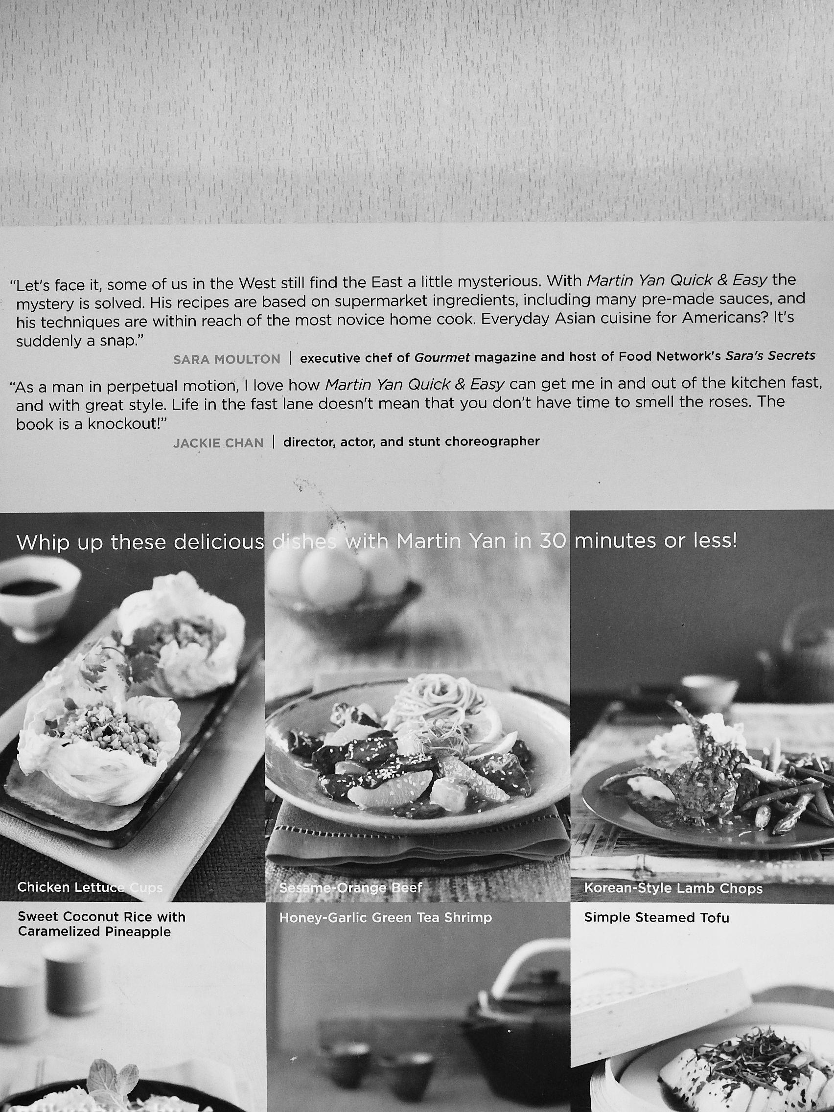 "As a man in perpetual motion, I love how Martin Yan Quick & Easy can get me in and out of the kitchen fast, and with great style. Life in the fast lane doesn't mean that you don't have time to smell the roses. The book is a knockout!"