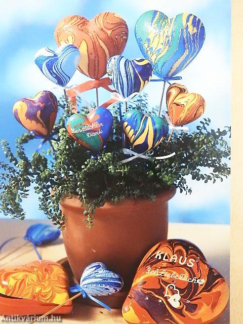 Márványozott húsvéti tojások, kerti gömbök és szívek, dobozok, képkeretek és lámpások. Márványozott papírokkal csodaszép színmintázatú üdvözlőlapokat, fotóalbumokat, noteszeket, valamint CD-borítókat készíthetünk.