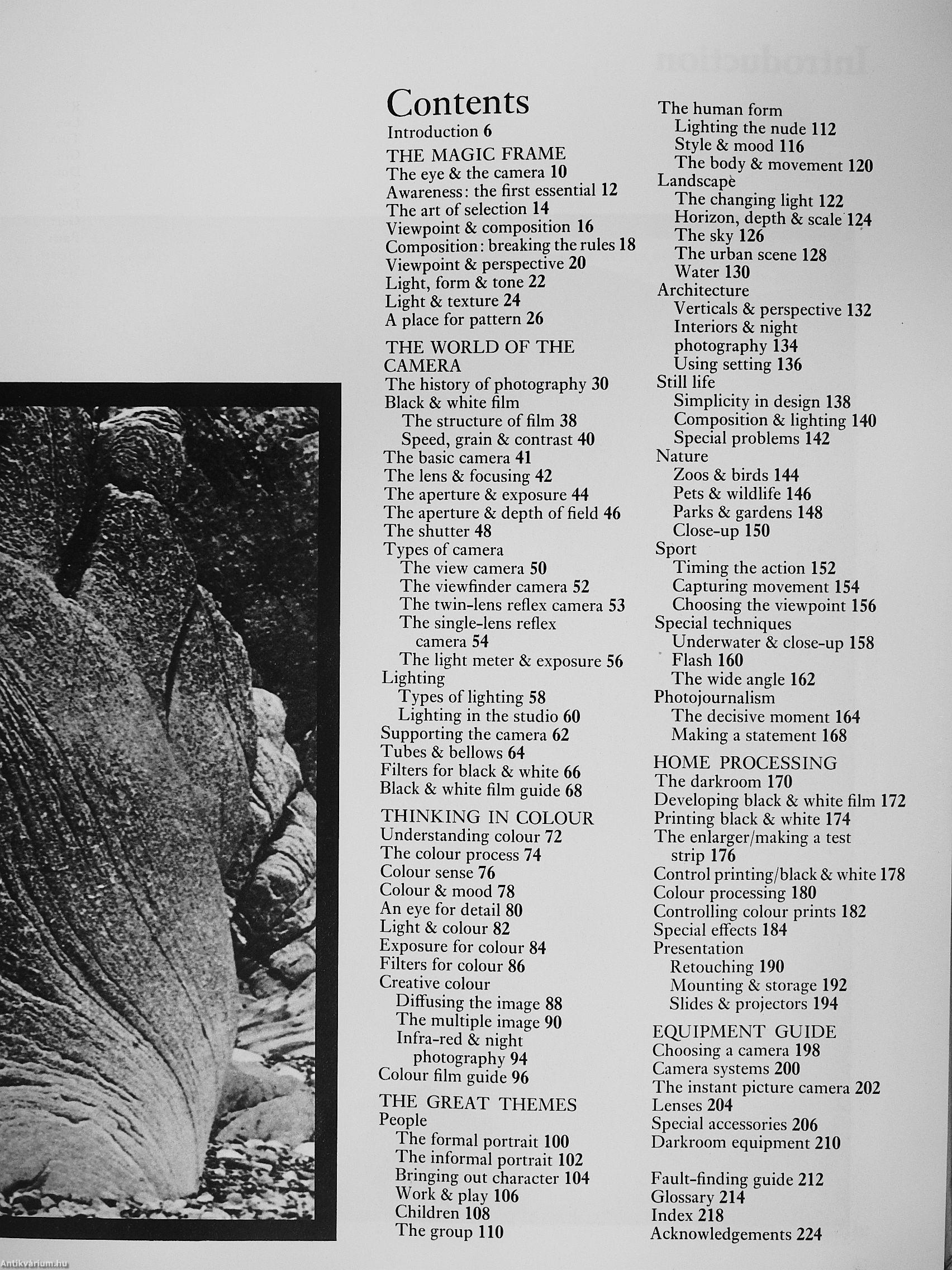 The workings of the different parts of the camera ore explained, along with how and when to use the various attachments, the selection and use of different lighting, filters and films. Mastery of these technical aspects of photography will enable you to take better pictures in almost all conceivable lighting and weather conditions.