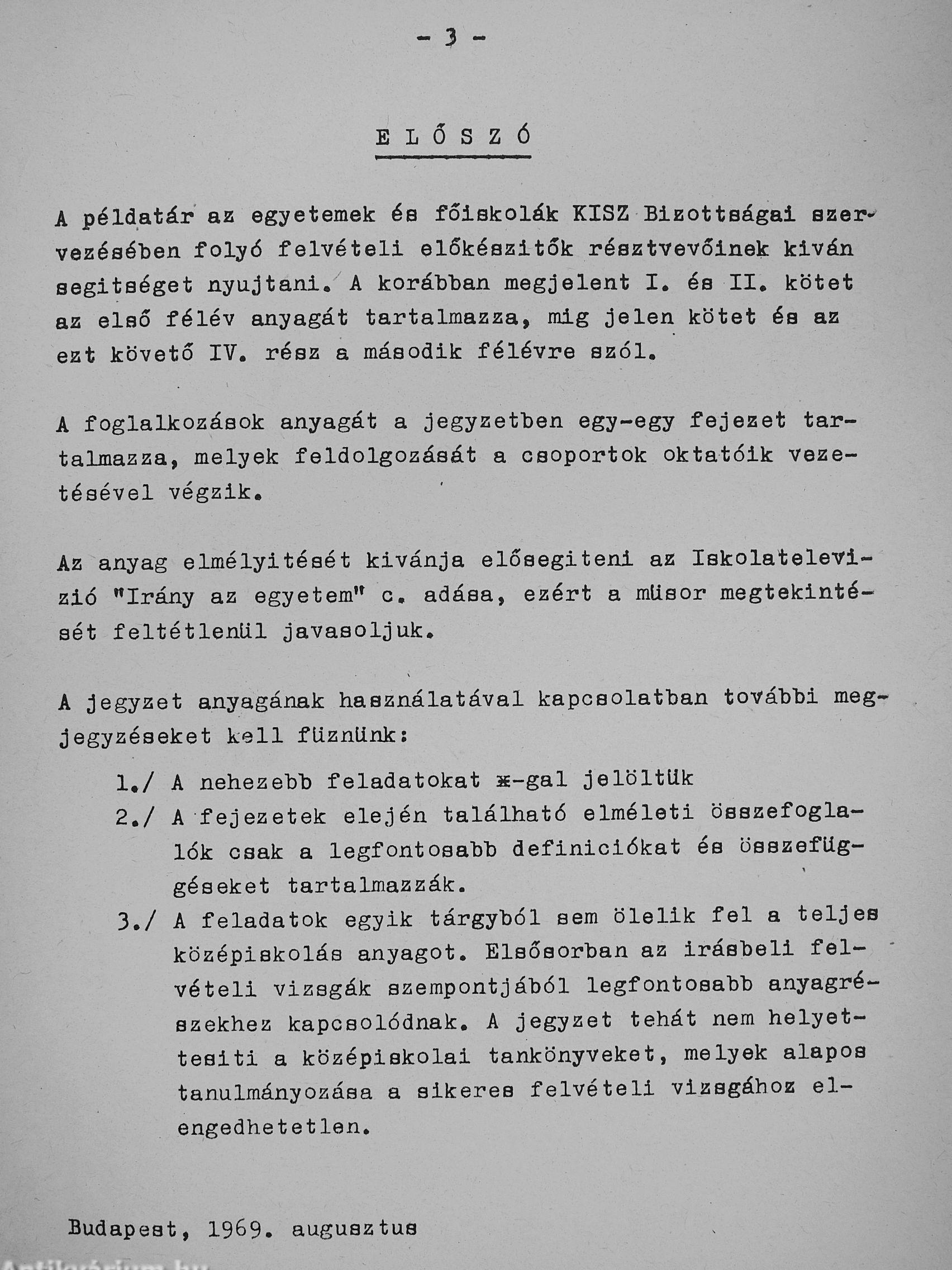 A felvételi vizsgára készülők részére/Művelődésügyi Minisztérium és a Budapesti Műszaki Egyetem Kisz Bizottsága
