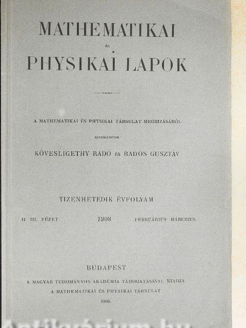 | Sorozatcím: | Mathematikai és Physikai Lapok |