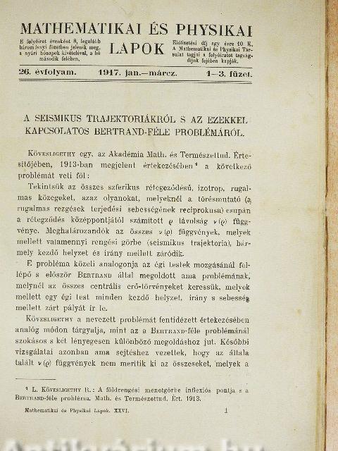 | Sorozatcím: | Mathematikai és Physikai Lapok |