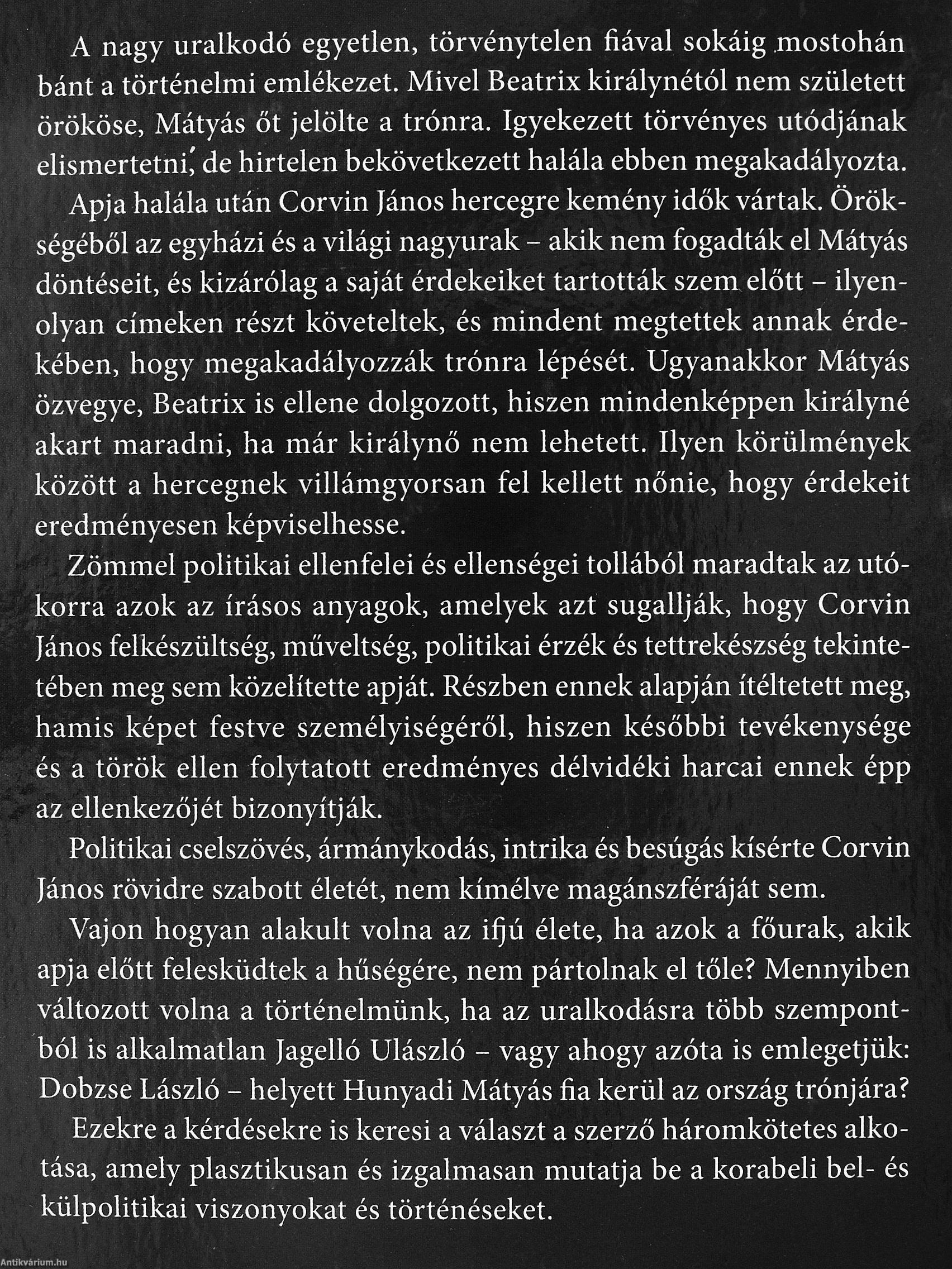 Vajon hogyan alakult volna az i^ú élete, ha azok a főurak, akik apja előtt felesküdtek a hűségére, nem pártolnak el tőle? Mennyiben változott volna a történelmünk, ha az uralkodásra több szempontból is alkalmatlan Jagelló Ulászló - vagy ahogy azóta is emlegetjük: Dobzse László - helyett Hunyadi Mátyás fia kerül az ország trónjára?