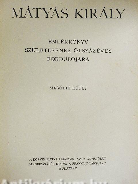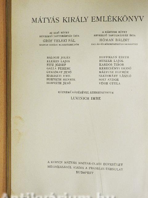 Mátyás király emlékkönyv I-II.