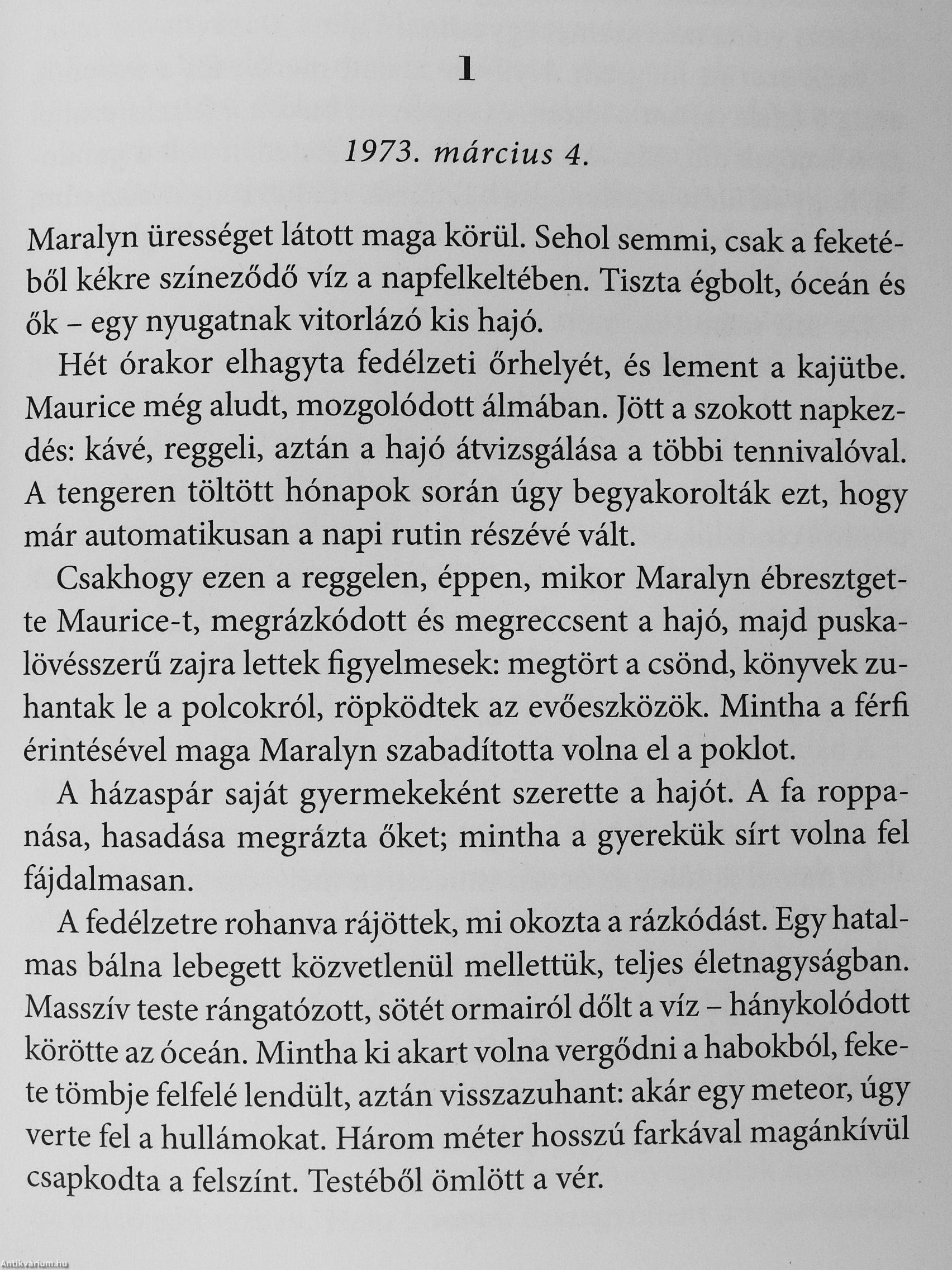Maurice és Maralyn Bailey 1972-ben hónapokat töltött mentŐGSónakjukban a Csendes-óceánon, miután egy bálna elsüllyesztette a hajójukat. Maurice leveleit és Maralyn naplóbejegyzéseit olvasva azonban nyilvánvalóvá válik: Maurice személyisége is ugyanolyan viharos, akár az óceán. A házaspár viszontagságos túlélése egyben egy megrendítő szerelmi történet is. Mert vajon szavakban vagy...