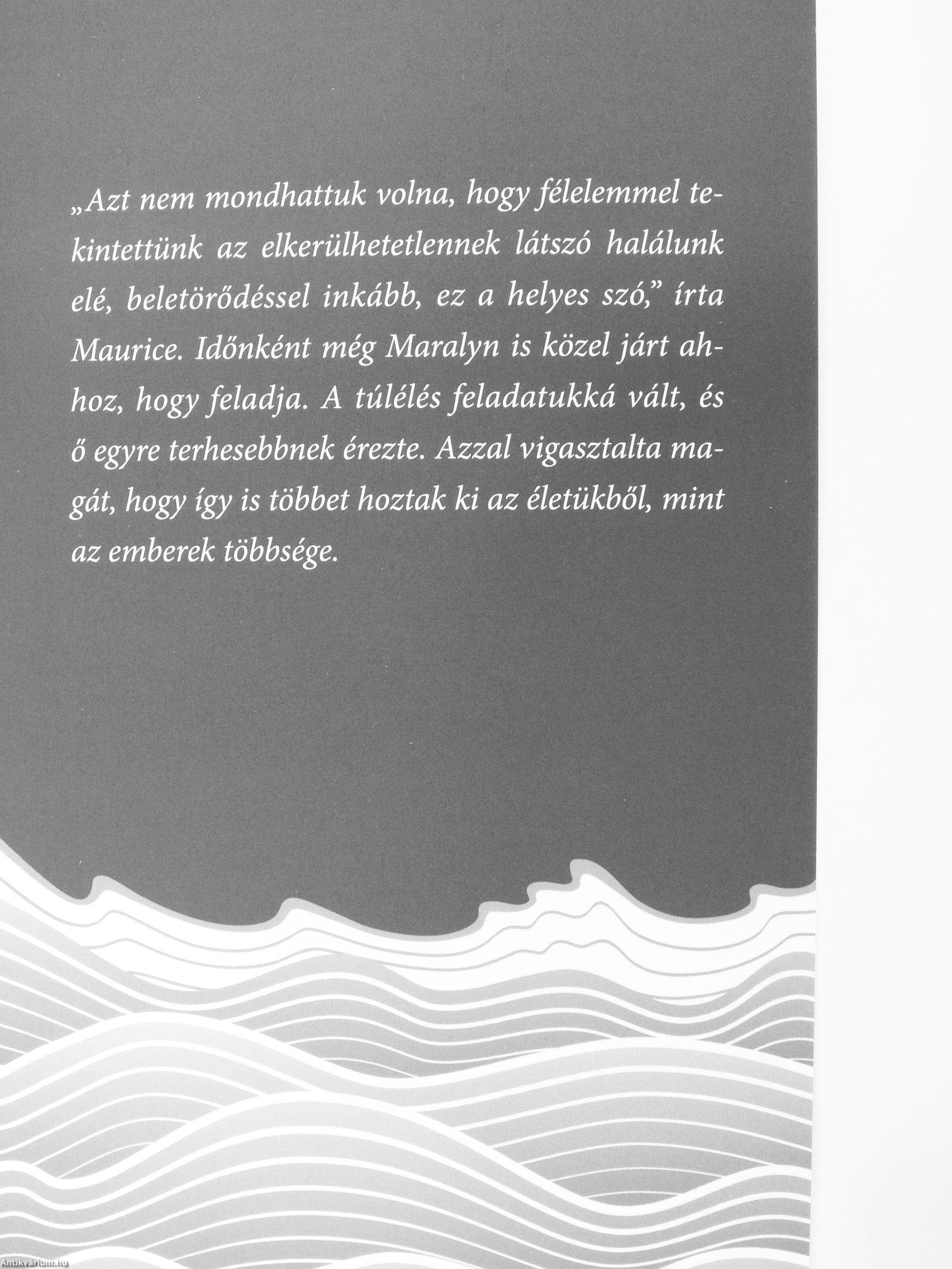 -Azt nem mondhattuk volna, hogy félelemmel tekintettünk az elkerülhetetlennek látszó halálunk elé, beletörődéssel inkább, ez a helyes szó" írta Maurice. Időnként még Maralyn is közeljárt ahhoz, hogy feladja. A túlélés feladatukká vált, és ő egyre terhesebbnek érezte. Azzal vigasztalta magát, hogy így is többet hoztak ki az életükből, mint az emberek többsége.