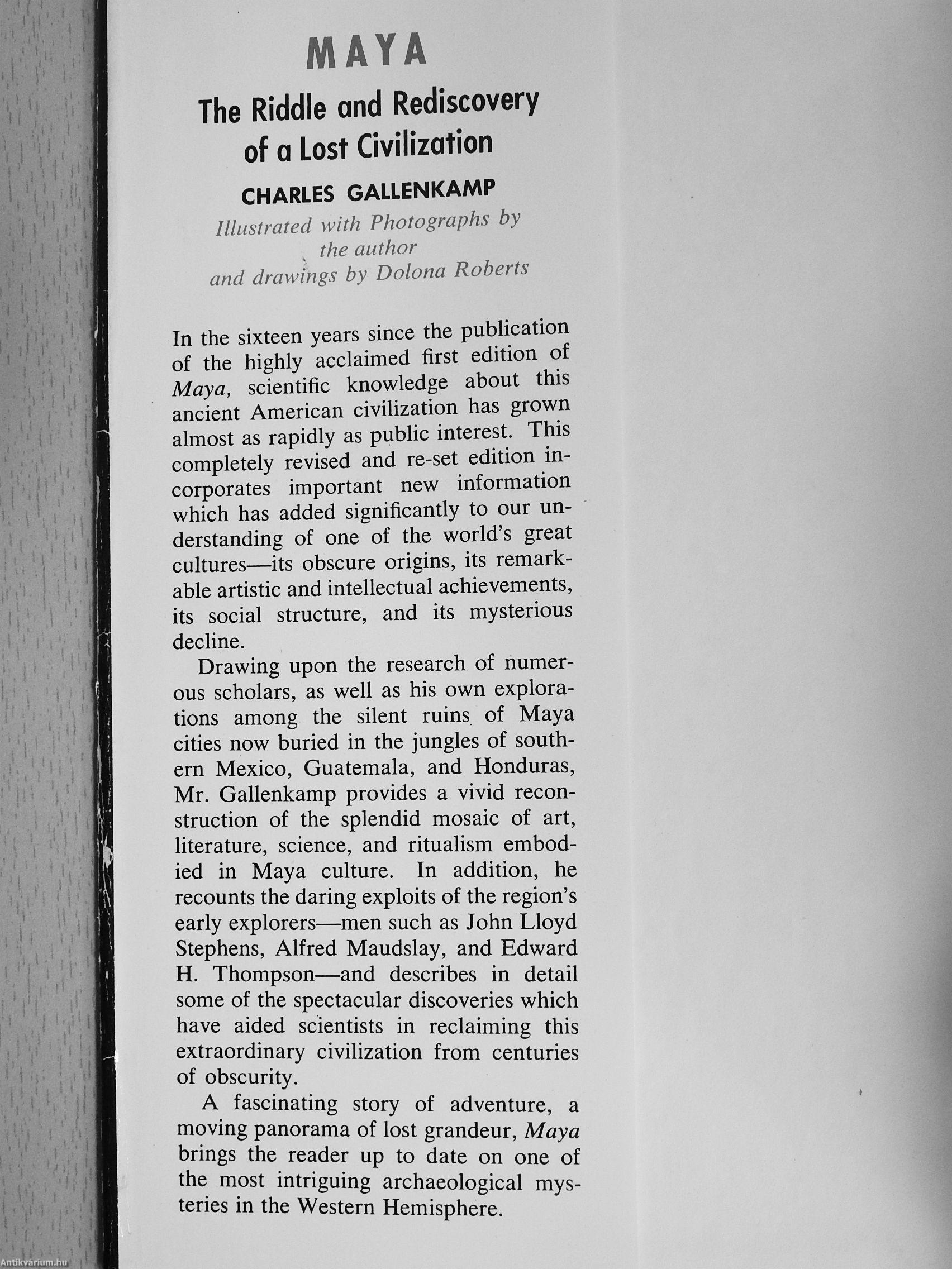 "Mr. Gallenkamp . . . has written a careful and most up-to late : account of the Maya and the successive stages of our knowledge ot them. His is indeed a book for both laymen and specialists,"-7^yril ConnoWy, London Sunday Times. - y-