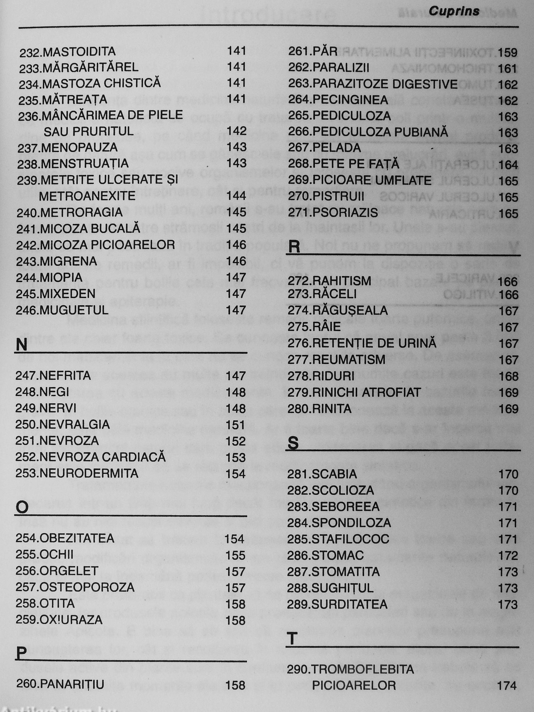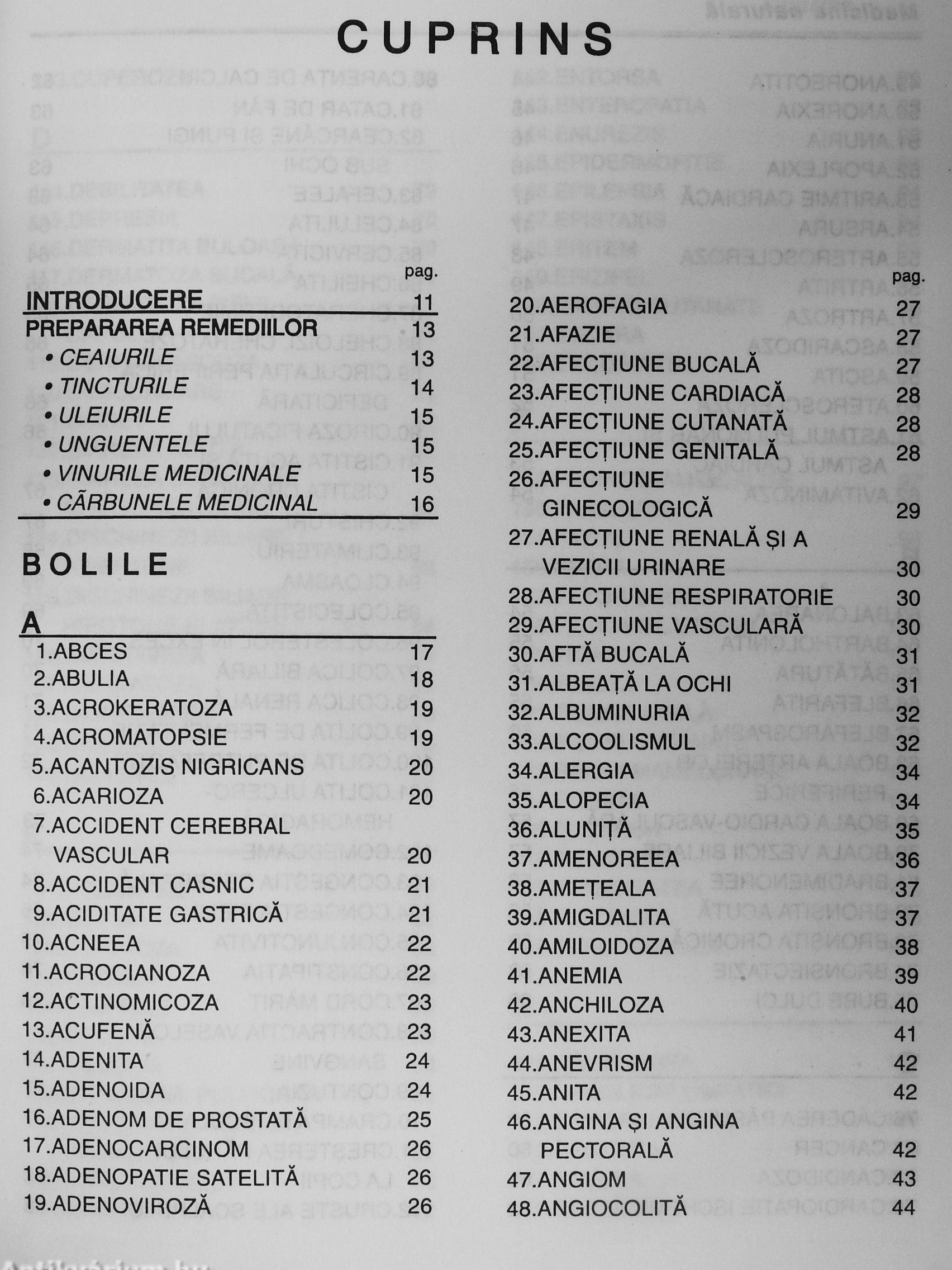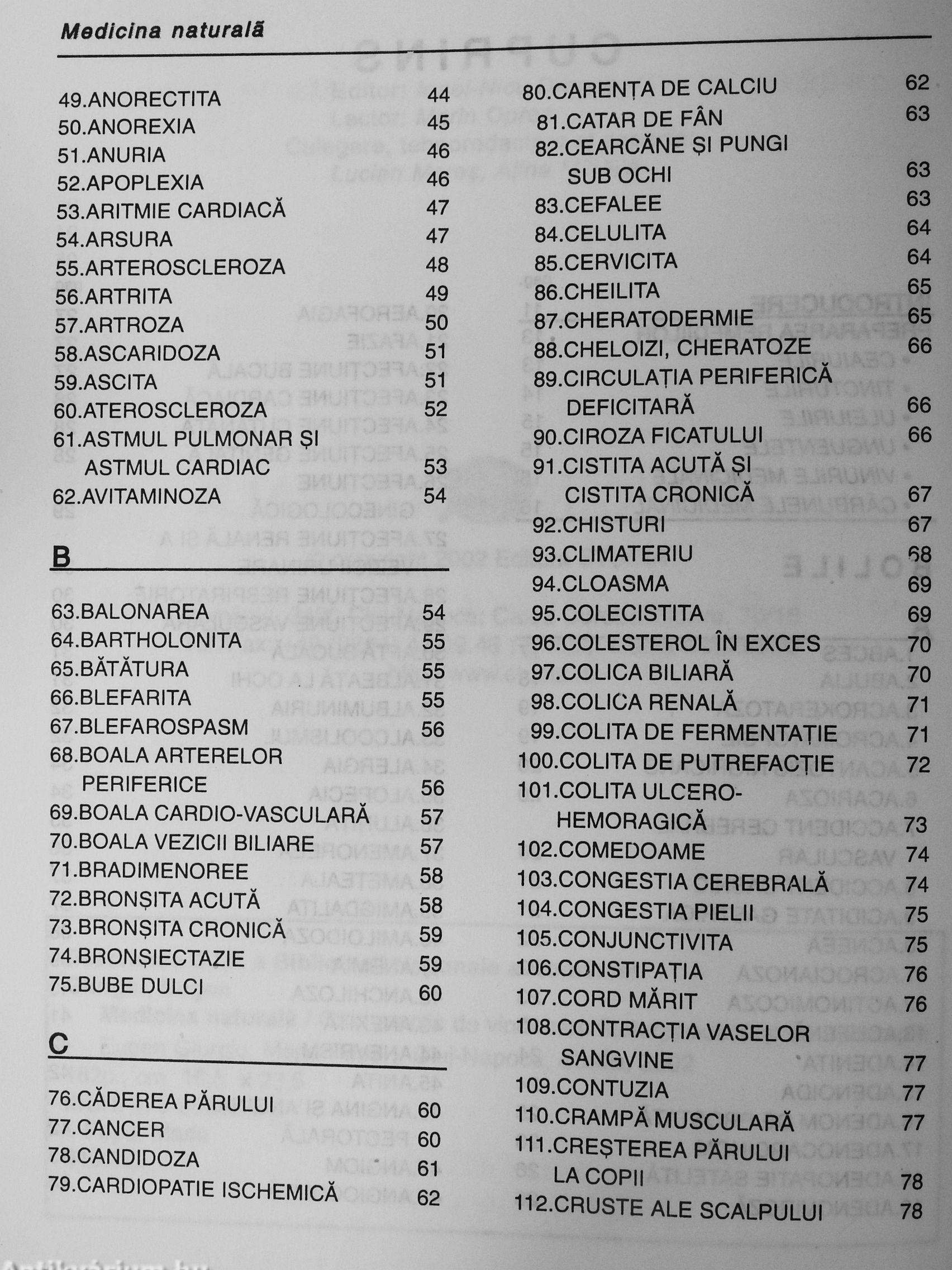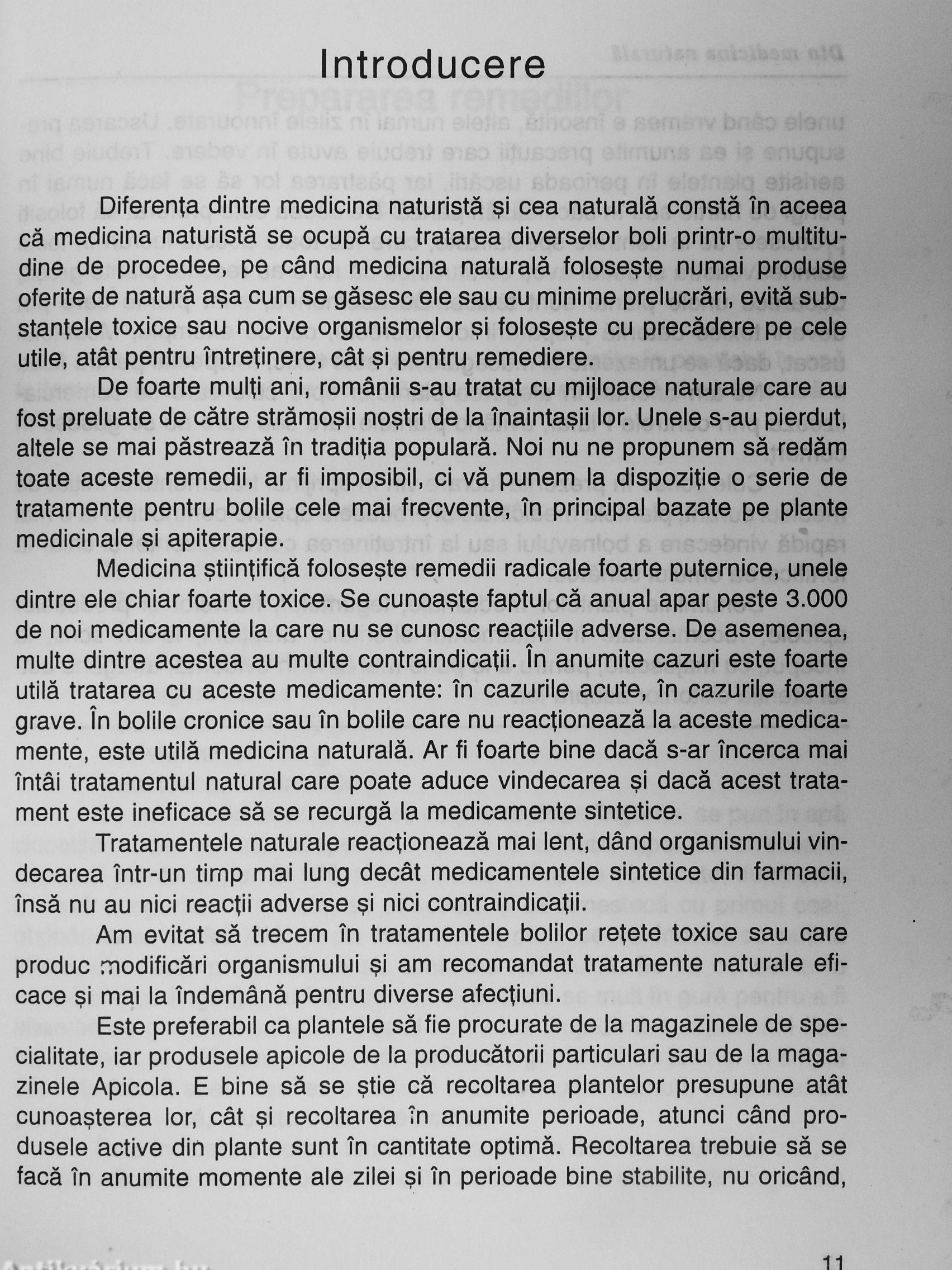 Autorii, speciali§ti în domeniu, au conceput acesta carte ca un pe ghid practic tie vindecare fitoterapeutica §i de apiterpie a unui numar de 300 de afectiuni dintre cele mai frecvente. Recomahdarile au în vedere folosirea pro-duselor oferite de natura a§a bum se gasesc éle sau eu minime prelucrari, atât pentru remedieri cât §i pentru întretinere, evitându-se substanteie toxice sau nocive organismului, -