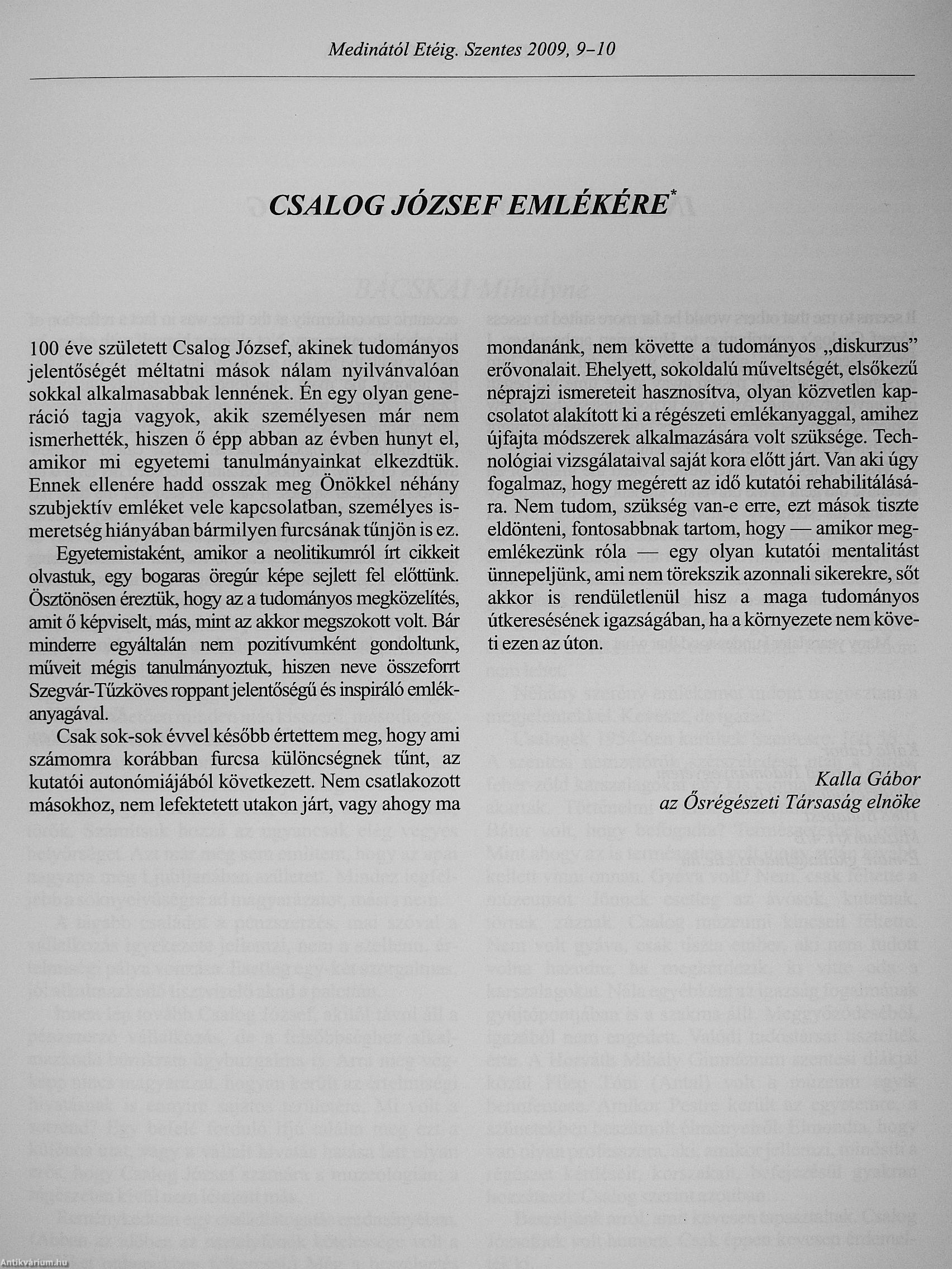 Tisztelgő írások Csalog József születésének 100. évfordulóján/Csalog József Emlékkonferencia - Szentes, Koszta József Múzeum, 2008. október 8-10.