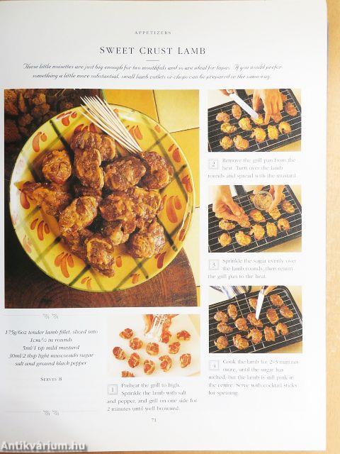 i Arranged in sections that cover appetizers, soups, vegetable dishes, salads, fish and shellfish, meat dishes, poultry dishes, grains, pulses and breads, desserts and pastries, this evocative collection presents both traditional favourites and new combinations. Try Chorizo in Olive Oil for a classic Spanish start to a meal, combine meat and fruit to delicious effect with Roast Loin of Pork Stuffed with Figs, Olives and Almonds, and end a special dinner with an east Mediterranean flourish by serving Semolina and —Ntrt Haiva covered in-a fragrantT-spicy: