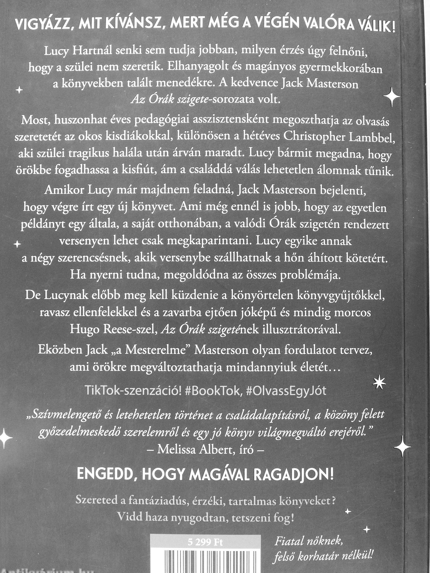 Lucy Hartnál senki sem tudja jobban, milyen érzés úgy felnőni, ^' hogy a szülei nem szeretik. Elhanyagolt és magányos gyermekkorában ^ a könyvekben talált menedékre. A kedvence Jack Masterson Az Órák szigete-sotoTaiXai volt.