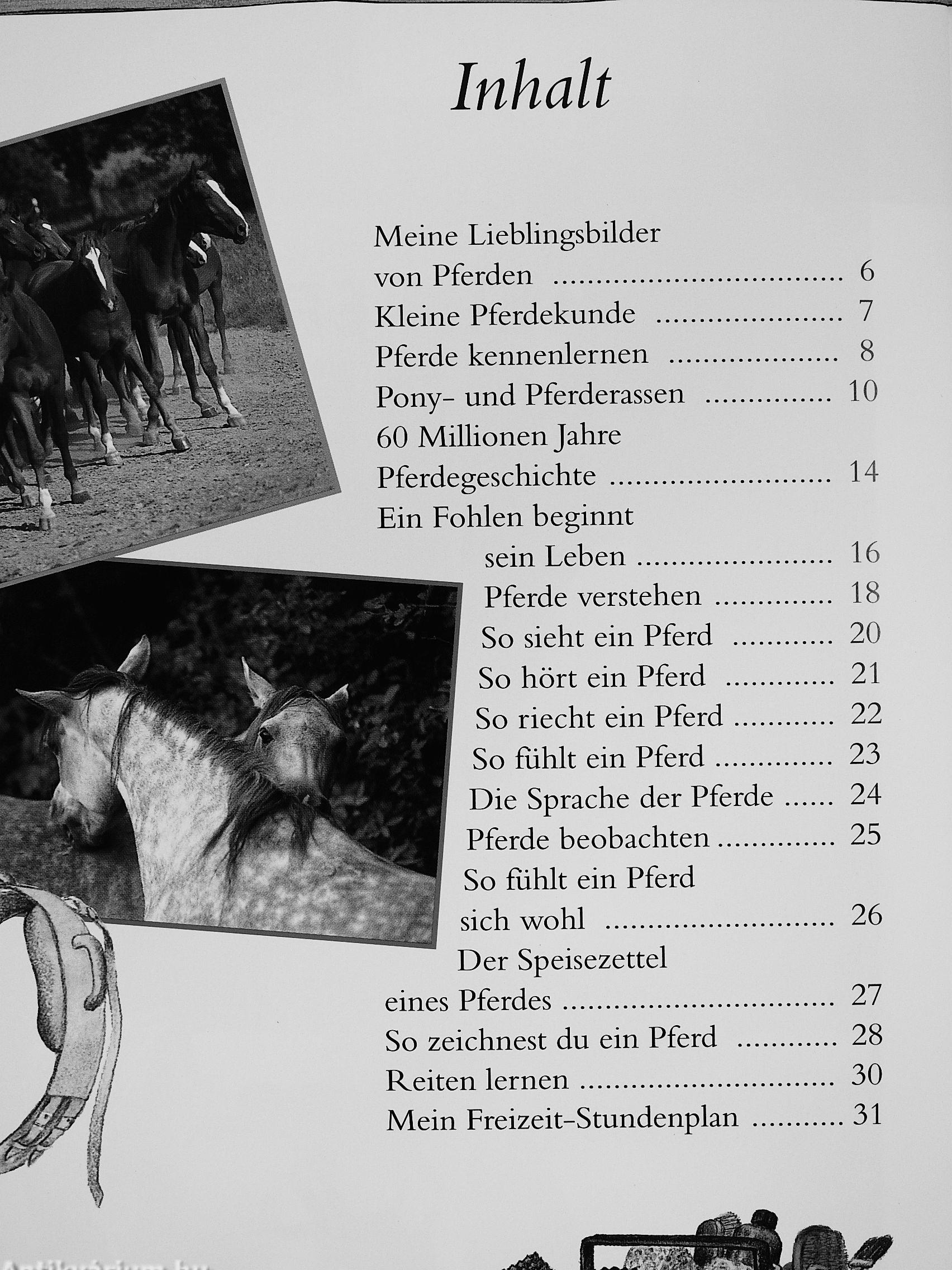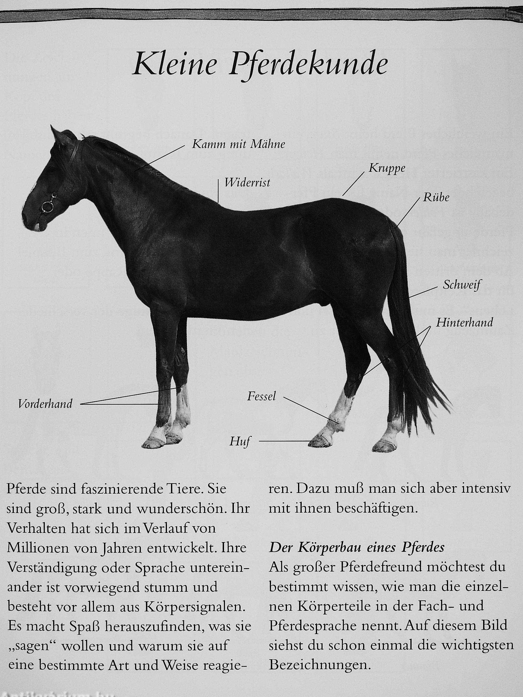 © die Herkunft der Pferde © die wichtigsten Pferde- und Ponyrassen « die Sprache der Pferde ® die Haltung und Pflege von Pferden ® die Grundregeln des Reitens