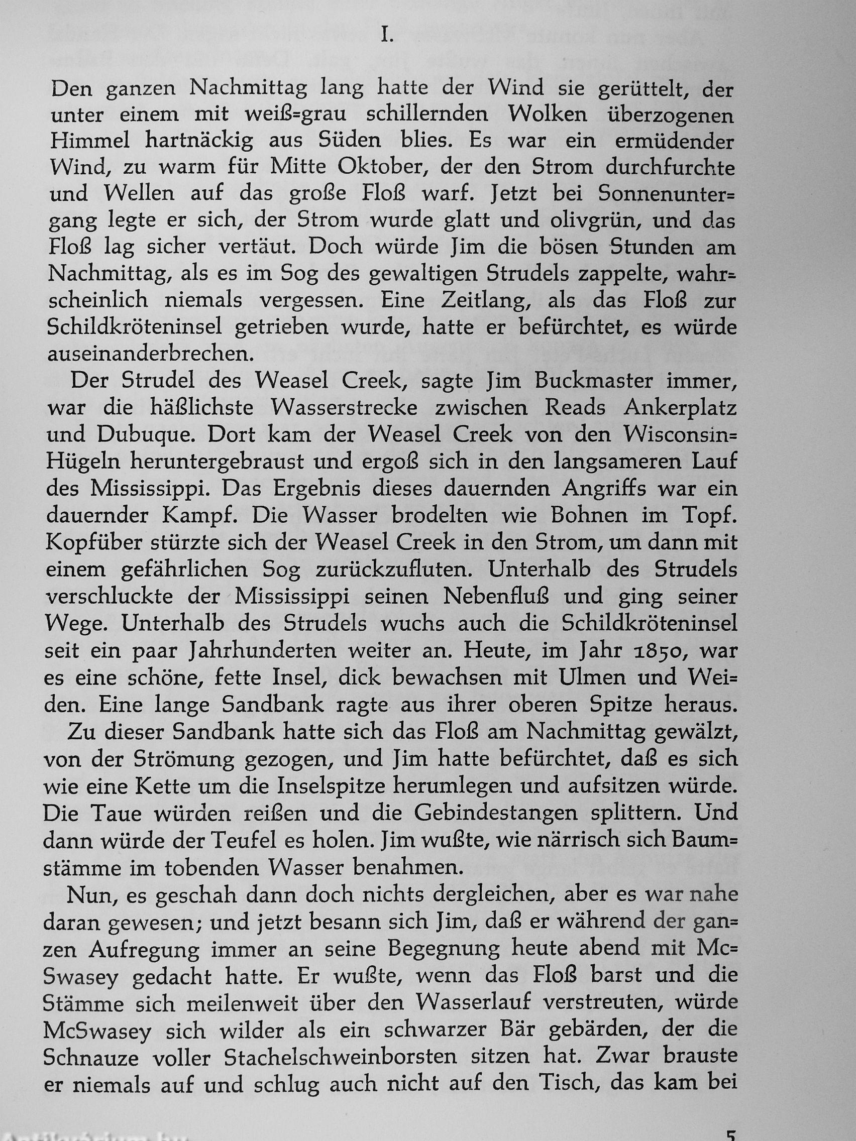 Vor dem farbenprächtigen Hintergrund dieser histori= sehen Tatsachen rollt eine spannungsgeladene Hand= lung ab. Sie berichtet von der rauhen Welt der Flößer und Holzfäller und von den mächtigen Holzbaronen, die an den Ufern des Mississippi ein Leben voll Gefahr, schwerer Arbeit und hem= mungsloser Leidenschaften führen. Sie berichtet von Frauen, faszinierenden Mi=