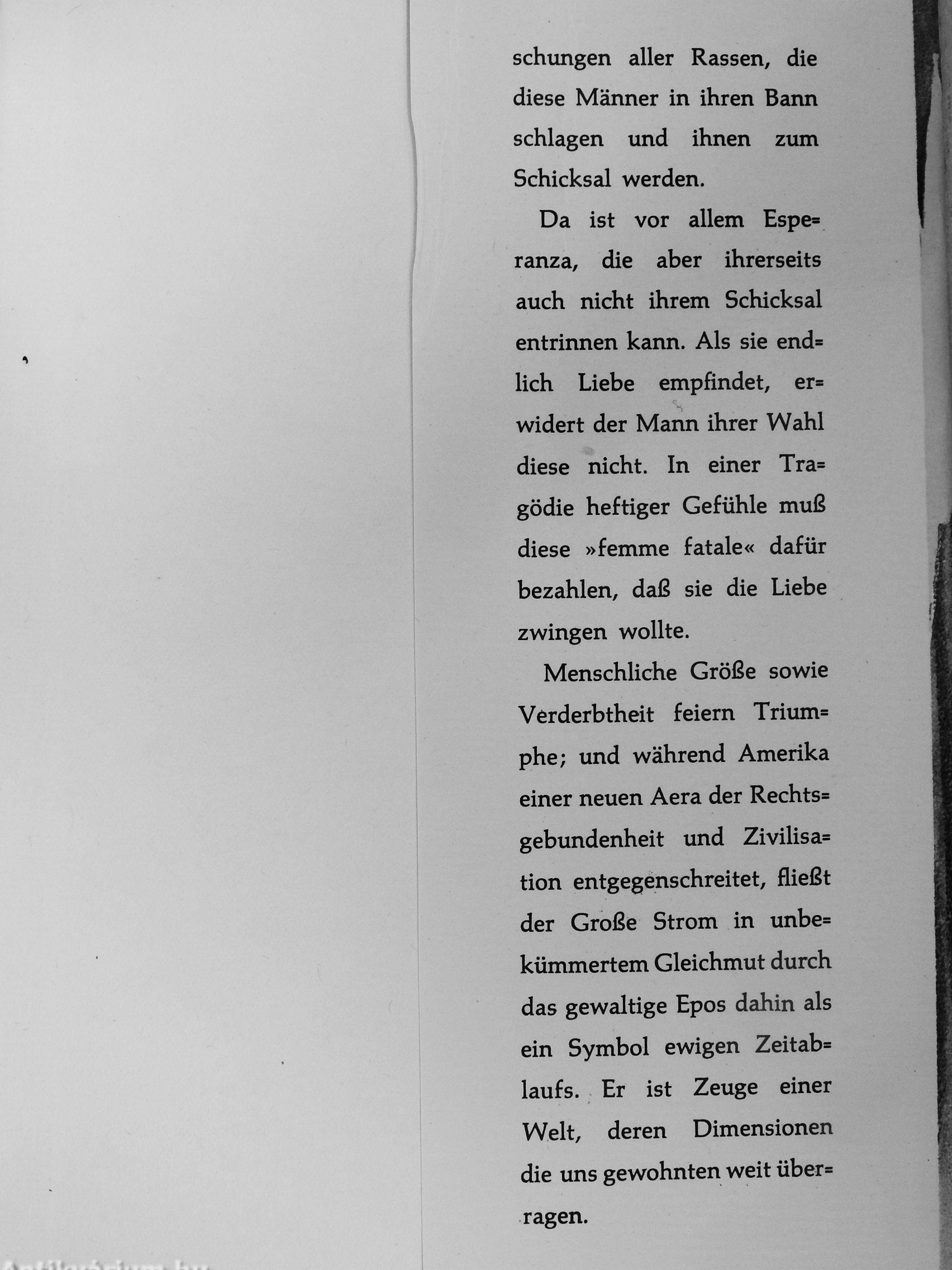 Menschliche Größe sowie Verderbtheit feiern Trium= phe; und während Amerika einer neuen Aera der Rechts= gebundenheit und Zivilisa= tion entgegenschreitet, fließt der Große Strom in unbe= kümmertem Gleichmut durch das gewaltige Epos dahin als ein Symbol ewigen Zeitab= laufs. Er ist Zeuge einer Welt, deren Dimensionen die uns gewohnten weit über= ragen.