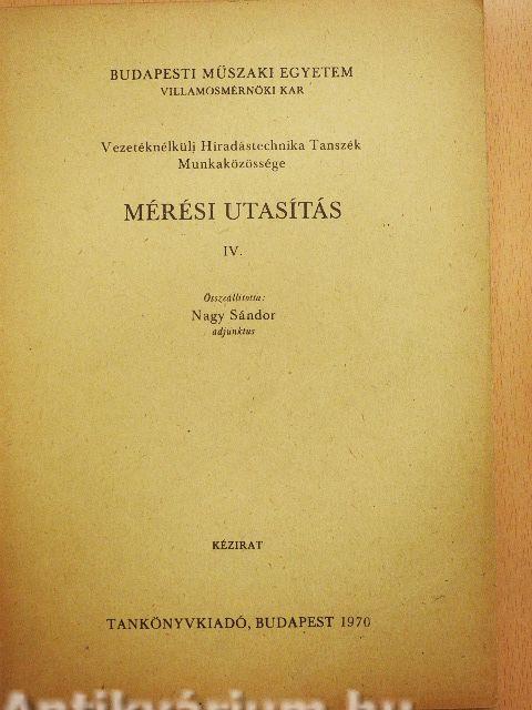 Mérési utasítás IV. Mérési utasítás IV. Mérési utasítás IV.