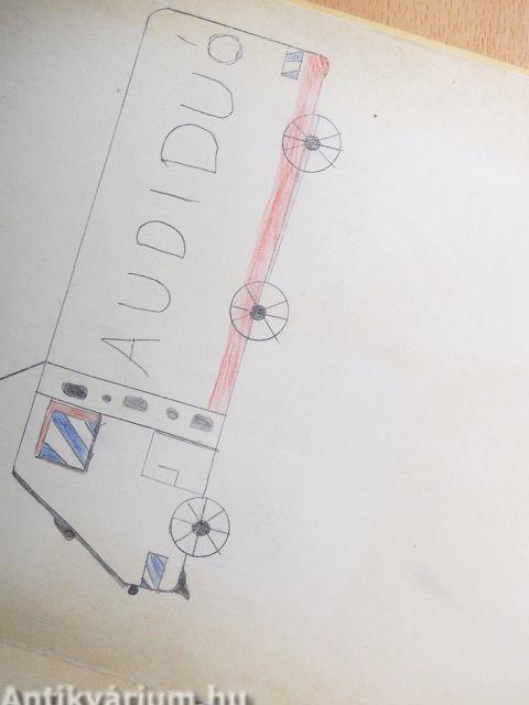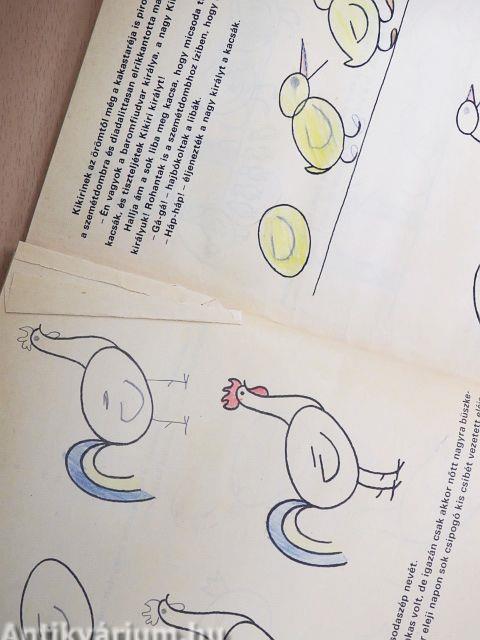 A gerinc sérült, több lapon gyermekrajz és színezés látható.