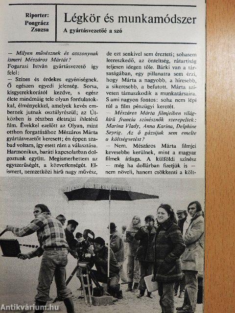 Ha a világ tisztességes filmművészei egy szép napon felkerekednének, hogy benépesítsenek egy lakatlan vidéket vagy valamely más bolygót, mert szeretnék élvezni egymás társaságát, a játékot és a barátságot, lefogadnám: az ötlet Mészáros Mártától származik. Ő a született családalapító, a legkülönbözőbb korú, anyanyelvű emberek között eleven kapocs, a legtársaslényebb társaslény, a legjátékosabb játékmester.