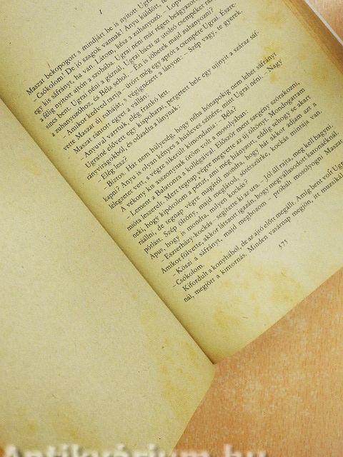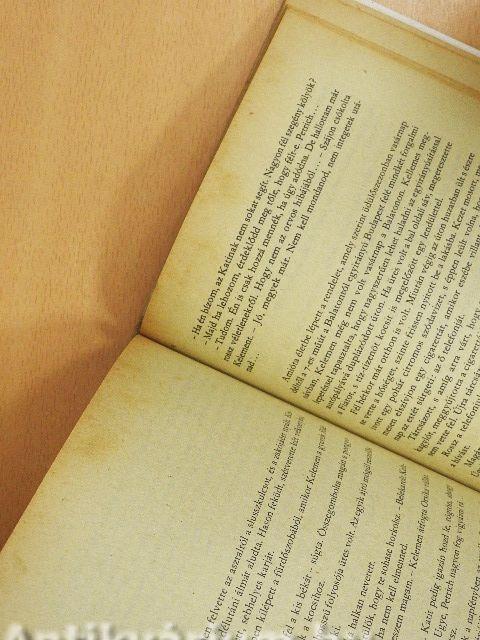 A védőborító elszíneződött, foltos, a lapélek foltosak, egy lap nyomdahibás.