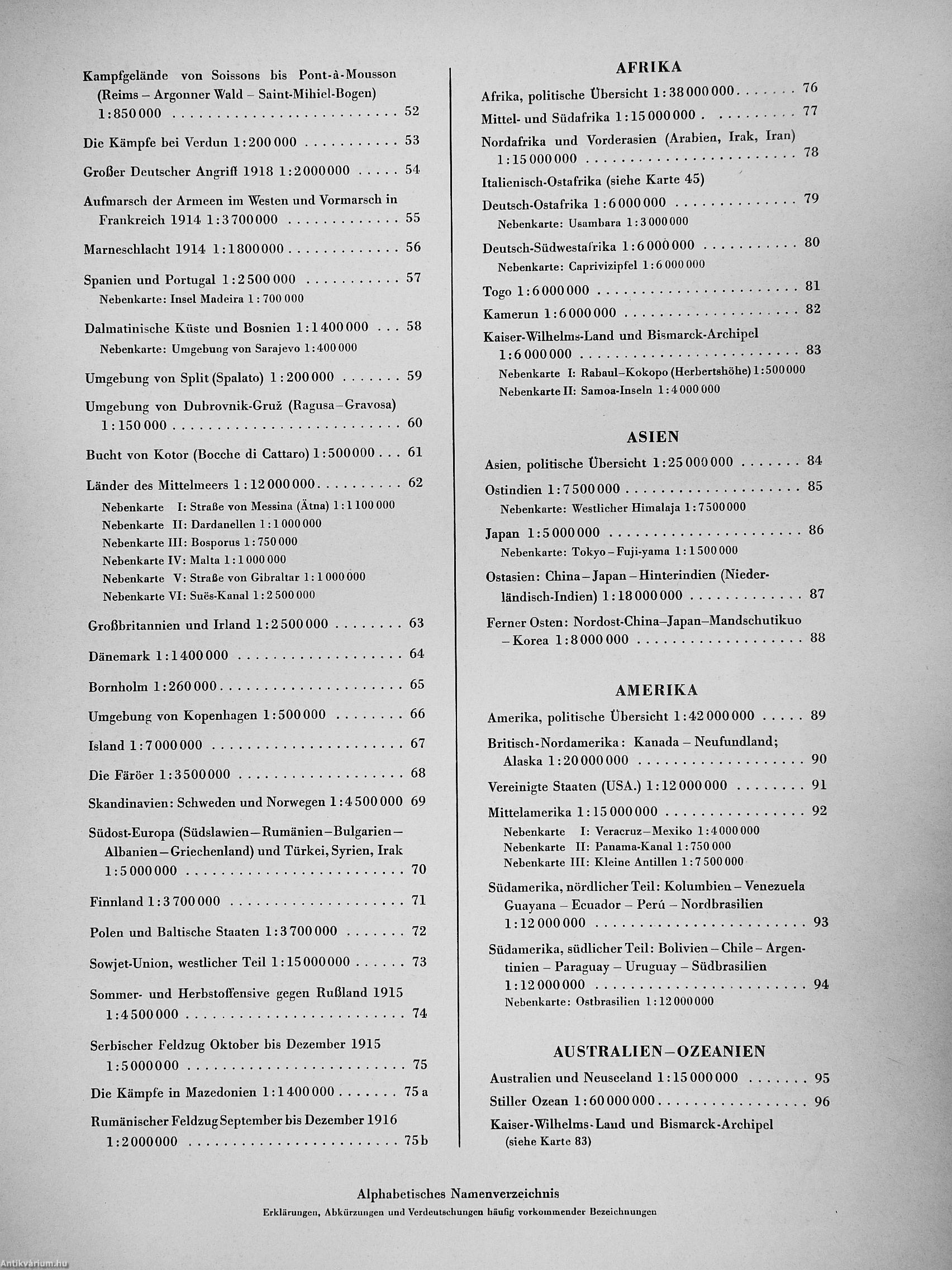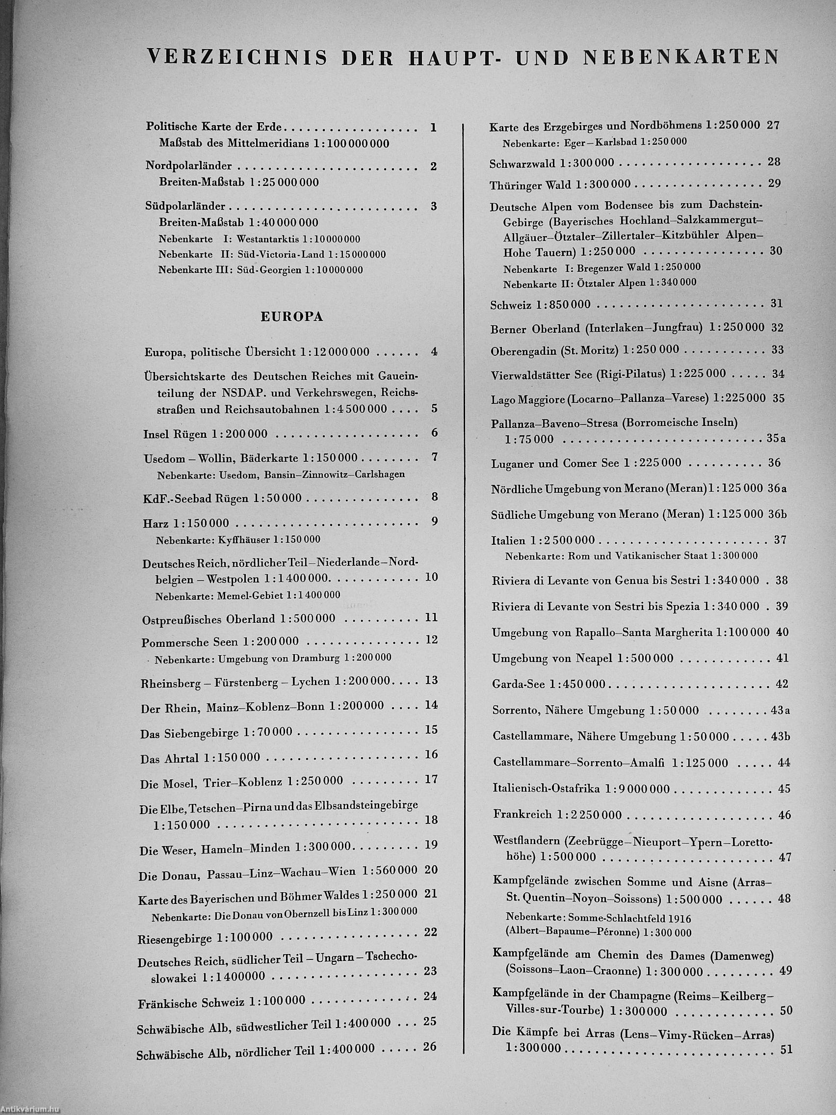 | Megjegyzés: | 213 térképpel, betűrendes névjegyzékkel mintegy 100 000 névvel és földrajzi bevezetővel és 79 színes illusztrációval. Nyomatta a Bibliographisches Institut AG, Lipcse. |