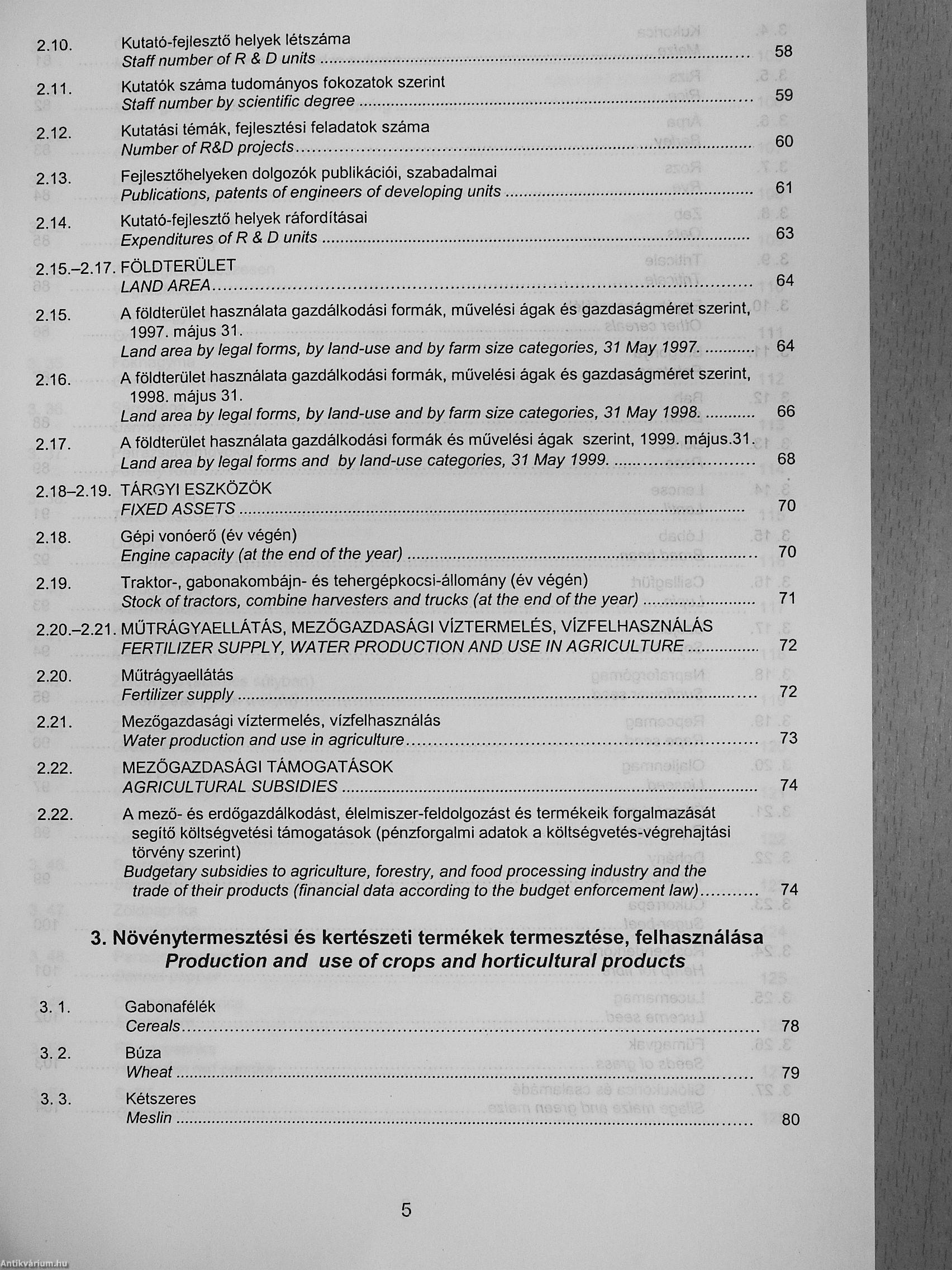 Mezőgazdasági Statisztikai Évkönyv 1999