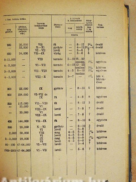 | Gyógy- és fűszernövények szaporítási és termésadatai | 42 |