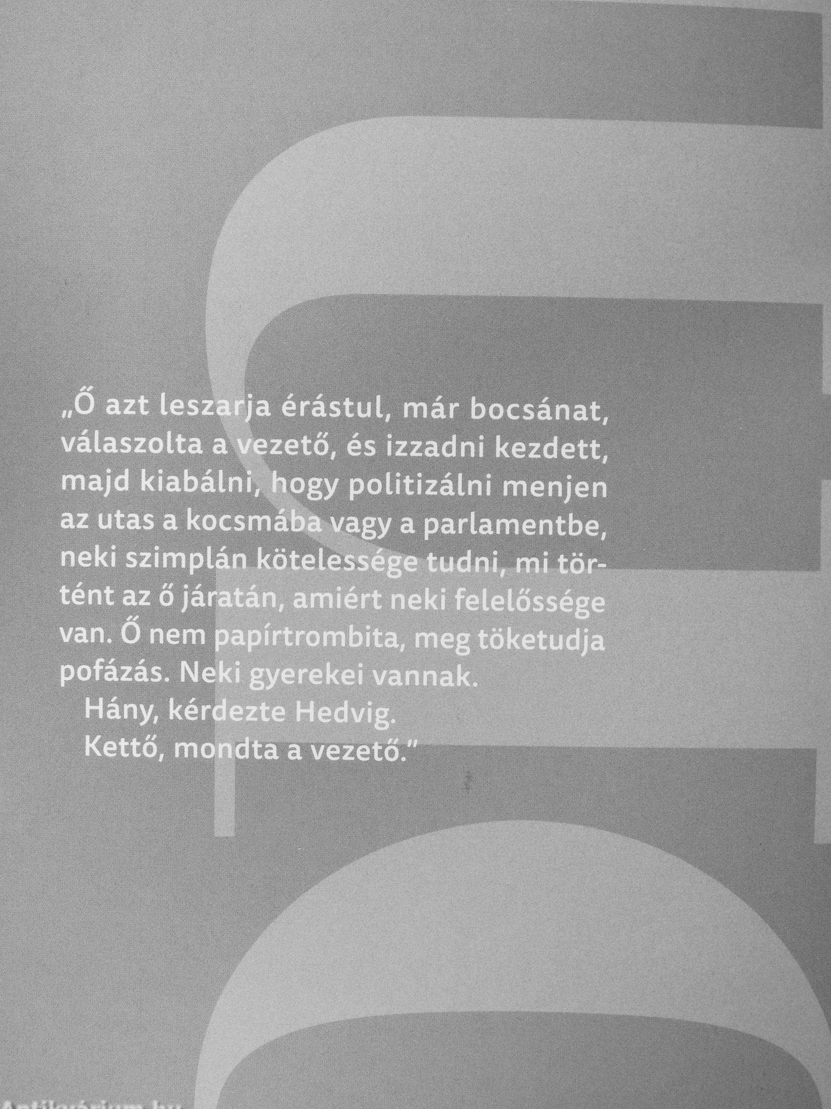 „O azt leszarja érástul, már bocsánat, válaszolta a vezető, és izzadni kezdett, majd kiabálni, hogy politizálni menjen az utas a kocsmáb%v3gy a parlamentbe, néki szinfplán kötelessége tudni, mi történt az ő járatán, amiért neki felelőssége van. Ő nem papírtrombita, meg töketudja pofázás. Neki gyerekei vannak.^