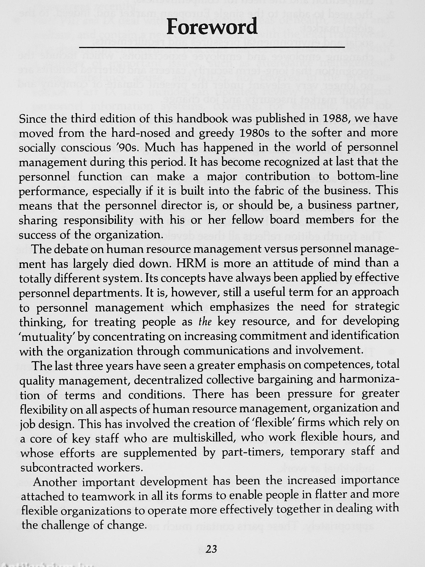 The author discusses the latest developments in the theory and practice of personnel management, such as the greater emphasis on competences, total quality marketing, decentralized collective bargaining and harmonization of terms and conditions. Generally the book reflects greater flexibility in all aspects of human resource management, organization and job design. A wide range of important topics is covered, including: