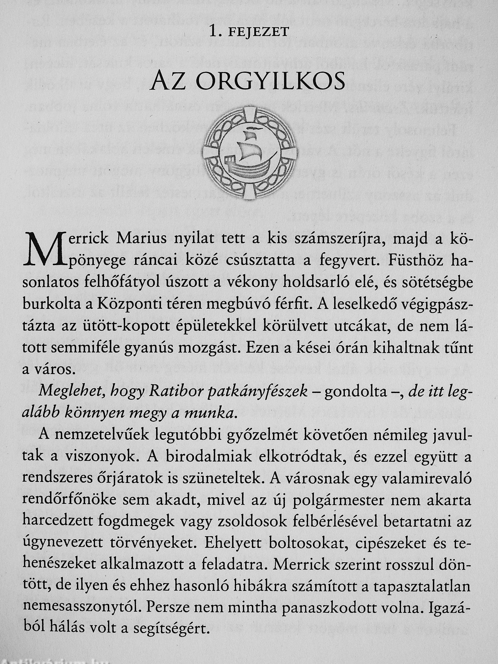 ARíyría egyik fele, Hadrían Blackwater Novron elveszett örökösének felkutatására indul. Egykori társa életét féltve, Royce Melborn ismét csatlakozik hozzá egy utolsó küldetésre, így együtt száUnak tengerre. A sikerre egyetlen esélyük, ka szembeszállnak a kíméletlen Merrick Máriusszá!, a mesterbúnözővel, aki barátból Royce legádázabb ellenségévé vált. Úl^uk csapdák és árulás ingoványos vidékén át vezet, és Hadrían arra kényszerül, hogy szembenézzen rég eltemetett múltjával.
