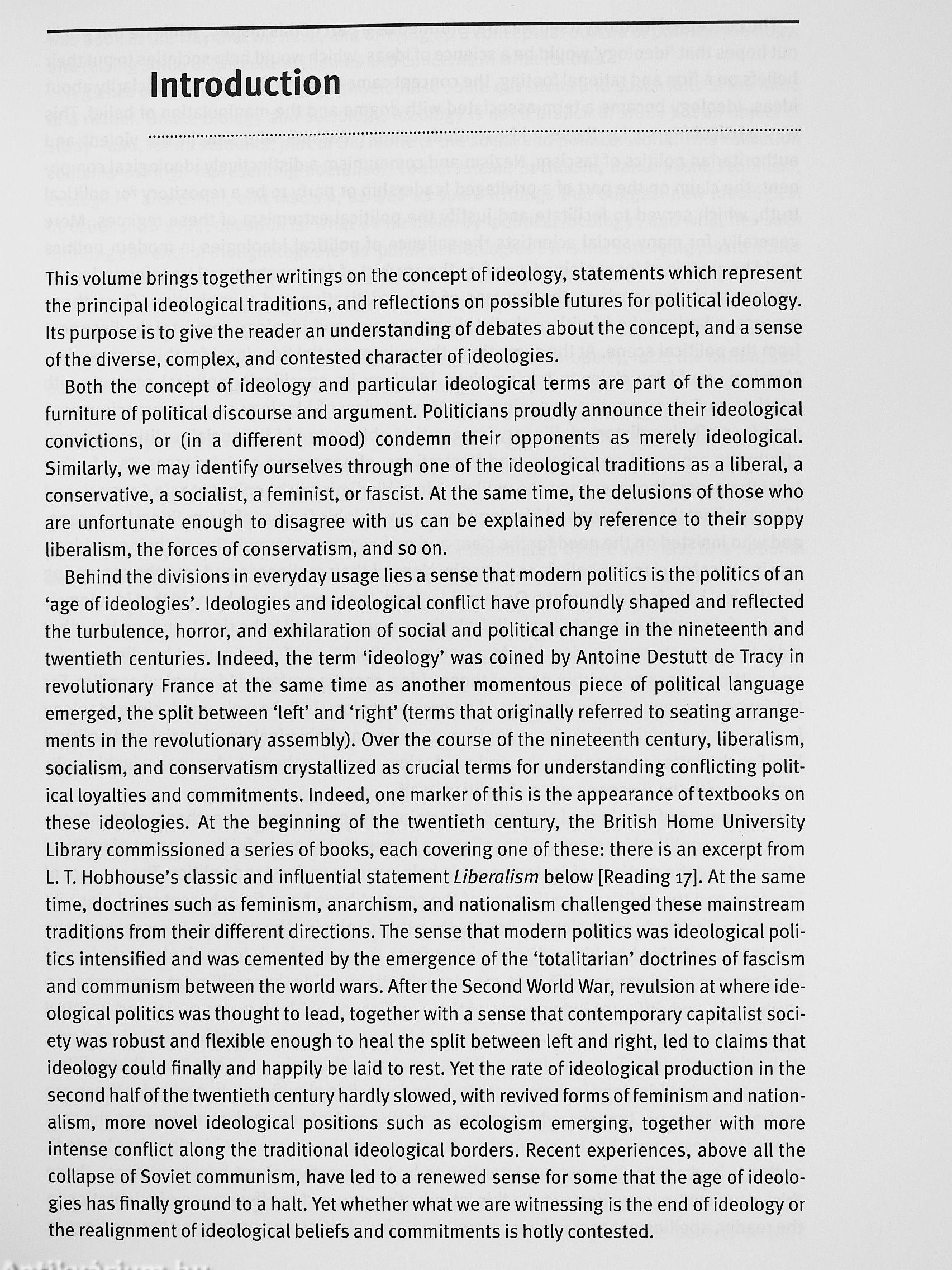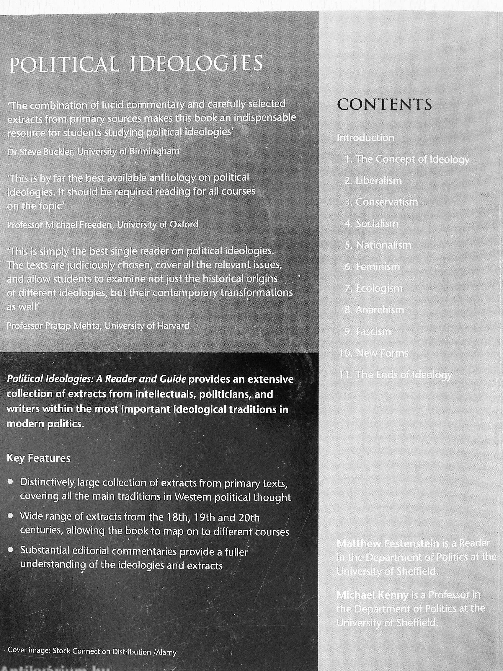 'This is simply the best single reader on political ideologies. The texts are judiciously chosen, cover all the relevant issues, and allow students to examine not just the historical origins of different ideologies, but their contemporary transformatLons as weir
