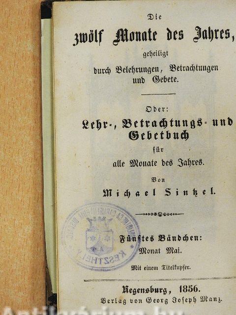 der allerseligsten Jungfrau und Mutter Gottes Maria geweiht durch Betrachtungen, Gebete, Beispiele und Uebungen auf alle Tage dieses Monats/Morgen-, Abend-, Mess-, Vesper-, Beicht-, Kommunion- und verschiedenen andern Gebeten/Die zwölf Monate des Jahres, geheiligt durch Belehrungen, Betrachtungen und Gebete. Oder: Lehr-, Betrachtungs- und Gebetbuch für alle Monate des Jahres