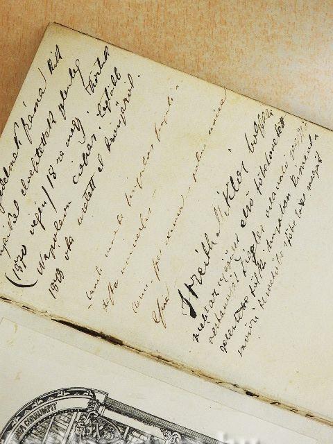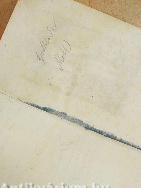 Könyvtári könyv volt. A borító kopott, éle sérült. Néhány oldalon bejegyzés látható. A kötés megtört. Több oldal foltos.