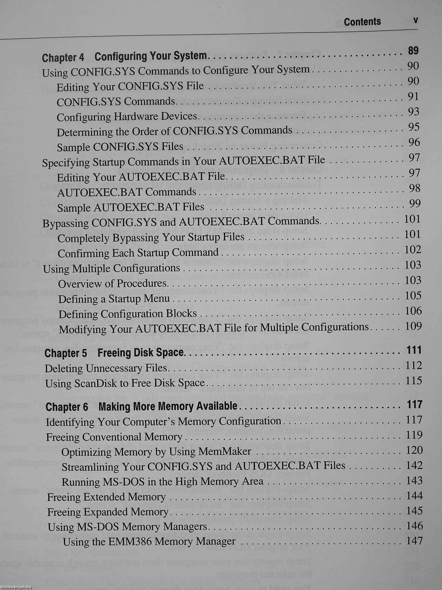 Kilenc fejezetből álló felhasználói kézikönyv, melynek segítségével használni tudjuk az MS-DOS 6.22-es verziót. A bevezető után az első fejezetben magáról a programról olvashatunk, a második fejezetben pedig a különböző lemezekről esik szó. Miután így bevezetett minket az alapokba, a könyv bemutatja magát az operációs rendszert is: indítás, kilépés, másolás, stb. A negyedik fejezet a rendszer konfigurálásával foglalkozik. Az ötödik fejezet mutatja be a lemeztömörítés lehetőségeit, a hatodik pedig leírja a még több memória elérését. A maradék fejezetek pedig a problémák diagnózisával és megoldásával, illetve a program személyre szabásával foglalkoznak.