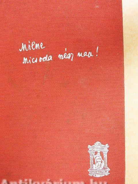 A borító foltos, belső oldalán ex-libris címke, a címlapon tulajdonosi pecsétnyom, az előzéklapon tulajdonosi bejegyzés található.