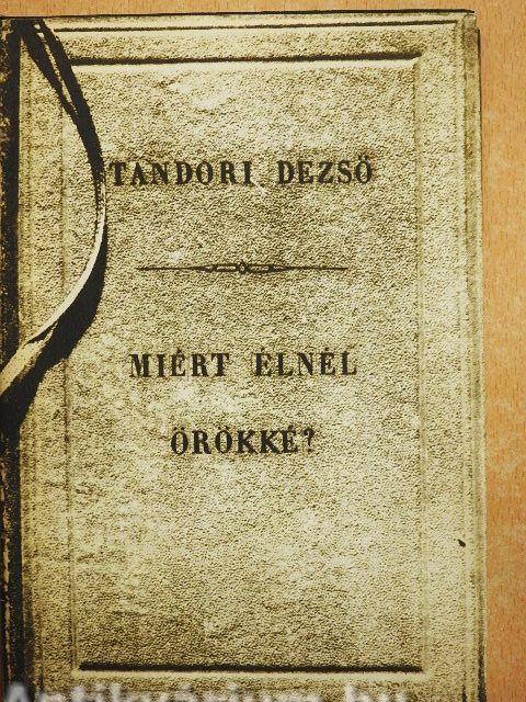 Tandori Dezsőnek van egy - a nyilvánosság előtt még be nem vallott - kedvenc elképzelése a "tökéletes" krimiről, amely azáltal lenne tökéletes, hogy nincs benne bűntény. Persze, azért felvonultatná az összes szokásos izgalomkeltő eszközt a helyes megoldás minél nehezebb megfejtése érdekében. A Miért élnél örökké? nem krimi, viszont olyasfajta regény, "amiben nincs" regény, a szónak sem a hagyományos, sem pedig a legszélsőségesebb értelmében. Érzelmi, lélektani és intellektuális "nyomozás" ez, amit D'Oré (az író) folytat a címben feltett kérdés válaszának a kiderítéséért.