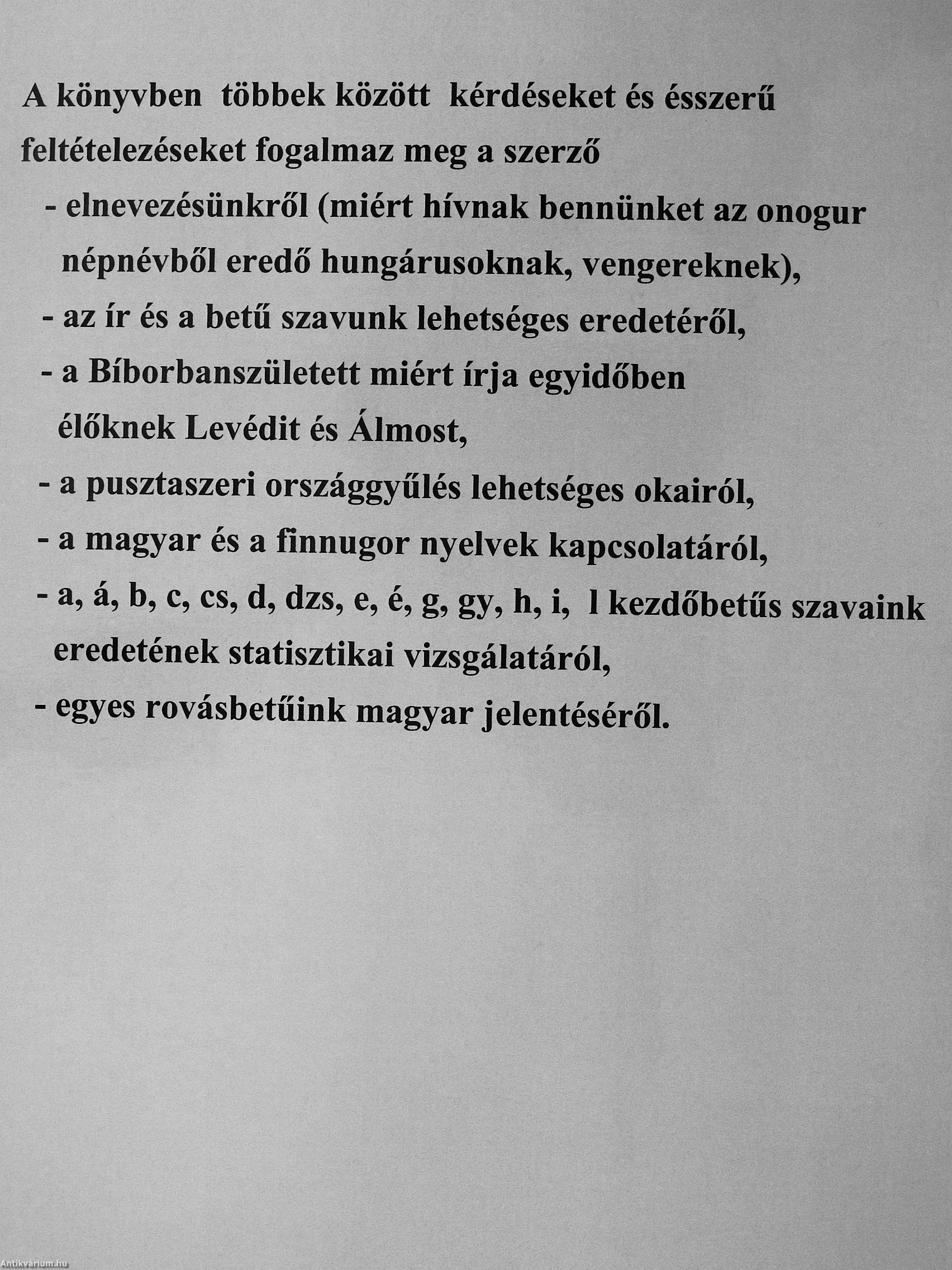 - elnevezésünkről (miért hívnak bennünket az onogur népnévből eredő hungárusoknak, vengereknek),