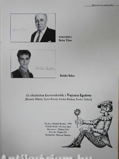 Megjegyzés: Fekete-fehér fotókkal. Bemutató: 1999. december 30-án csütörtökön 19 órakor, 1999. december 31-én pénteken, 21 órakor Zenéjét szerezte: Tolcsvay László színpadra alkalmazta: Müller Péter a dalszöveget írta: Müller Péter Sziámi