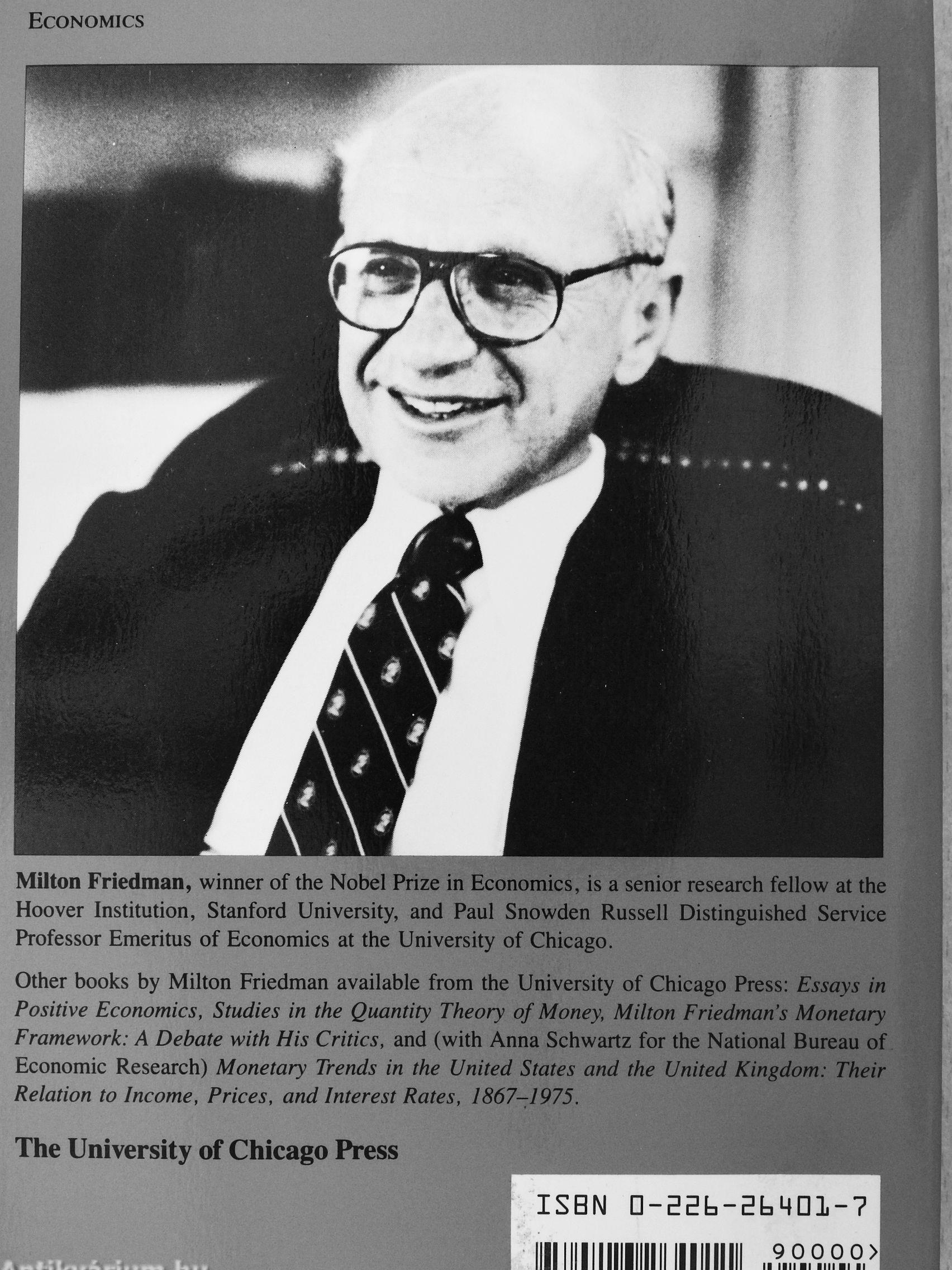 Other books by Milton Friedman available from the University of Chicago Press: Essays in Positive Economics, Studies in the Quantity Theory of Money, Milton Friedman's Monetary Framework: A Debate with His Critics, and (with Anna Schwartz for the National Bureau of Economic Research) Monetary Trends in the United States and the United Kingdom: Their Relation to Income, Prices, and Interest Rates, 1867-1975.