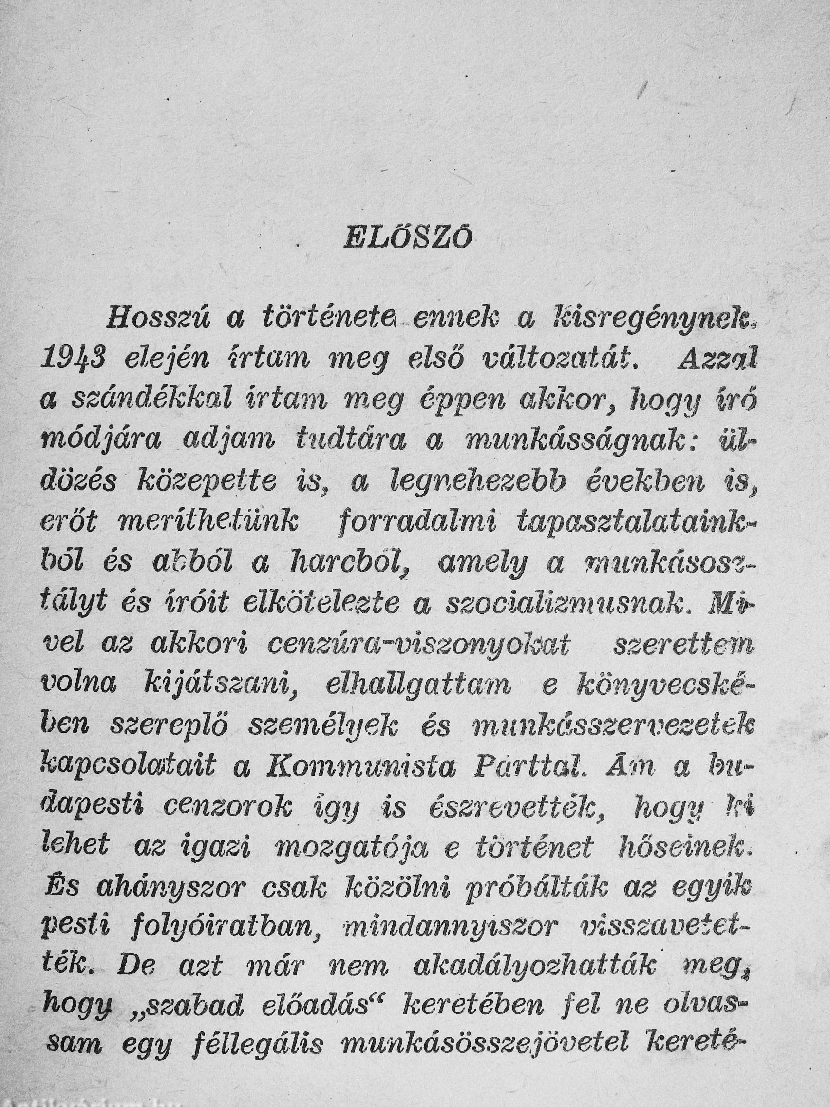 Könyvtári könyv volt. Az eredeti borító egy része vissza van ragasztva az első kötéstáblára. A címlapon tulajdonosi bejegyzés található.