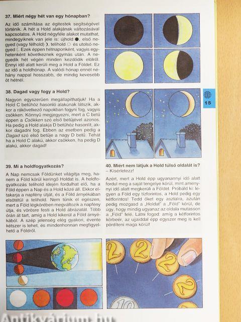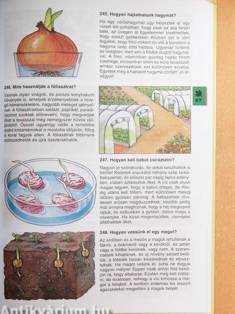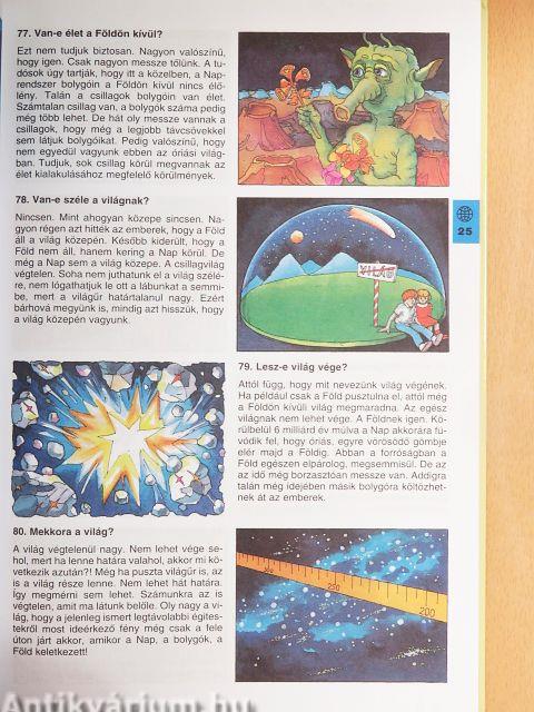 Abból tanul a gyerek, ha kérdez - szoktuk mondani az érdeklődő gyerek kitartó kérdezősködésére. S ebben nagy igazság rejlik! Egy kisgyereknek minden új, amit a környezetében lát, tapasztal. Ahogy növekszik, egyre több újdonságot fedez föl a világból, amelyet szeretne megismerni. Ha kérdez, az azt jelenti, hogy meglátott valamit, amit eddig nem vett észre. S ha a kérdésre helyes választ kap, azzal valóban tanul a gyerek. Könyvünkben 366 kérdést teszünk föl, a leggyakoribbak közül válogatva. A válaszok és a színes rajzok elkalauzolják a kis olvasót a csillagok, a technika, az állatok és növények birodalmába, sok mindent megtanulhatnak az emberi testről és az emberek világáról. A kötet a saját szórakozásukra olvasgató gyerekeknek hasznos ismeretbővítő forrás, és kiváló segédanyag az általános iskolások számára. Óvodások szüleinek is jó szívvel ajánljuk.