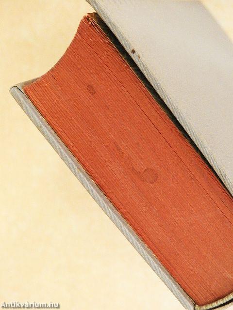 A borító, néhány lap és a lapélek foltosak. A borító kopott. A kötés megtört. A címlapon ragasztott címke látható.