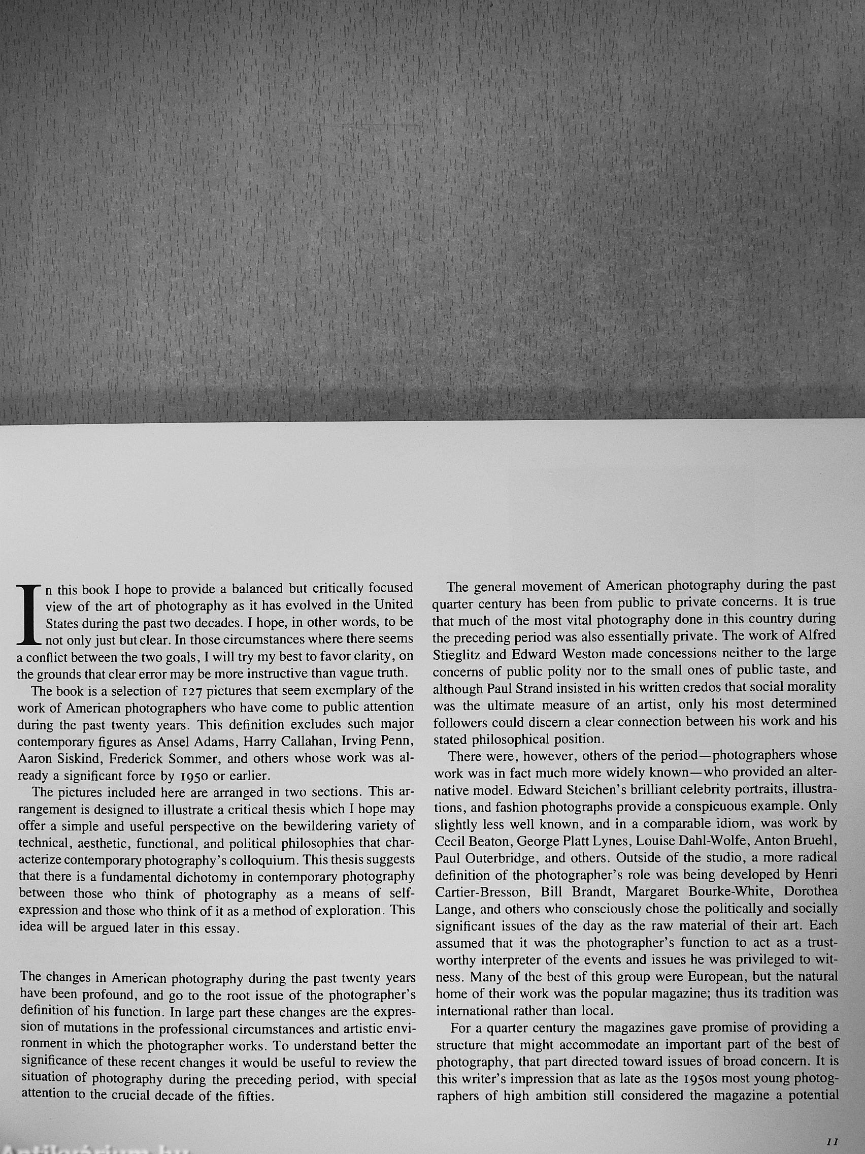 The author cites two basic influences from the fifties: Minor White's editorial...