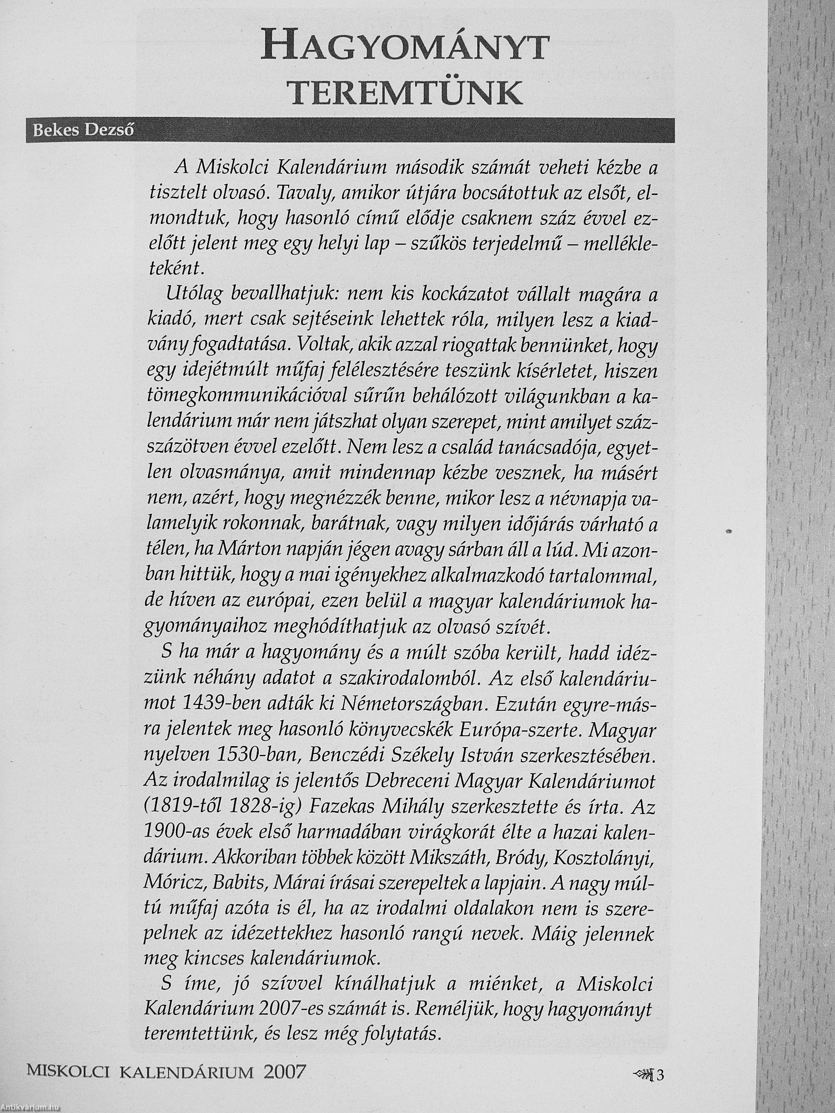 | Sorozatcím: | Miskolci kalendárium |