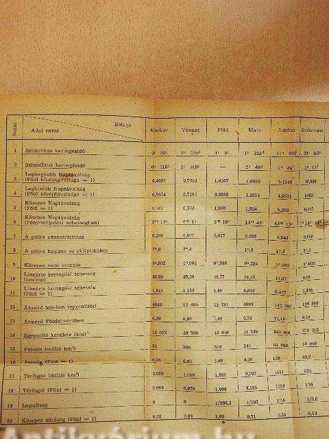 | A bolygórendszer fontosabb adatai | 61 |
