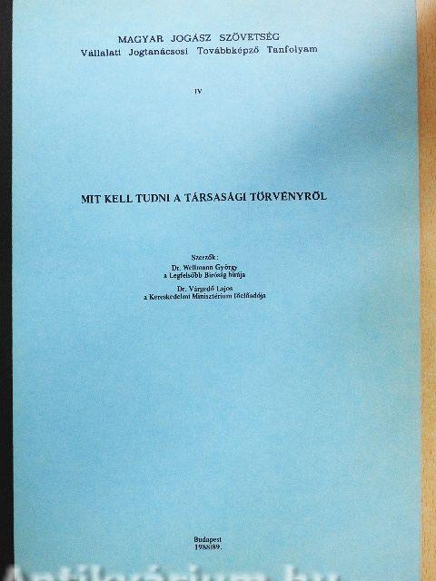 | Sorozatcím: | Magyar Jogász Szövetség Vállalati Jogtanácsosi Továbbképző Tanfolyam |