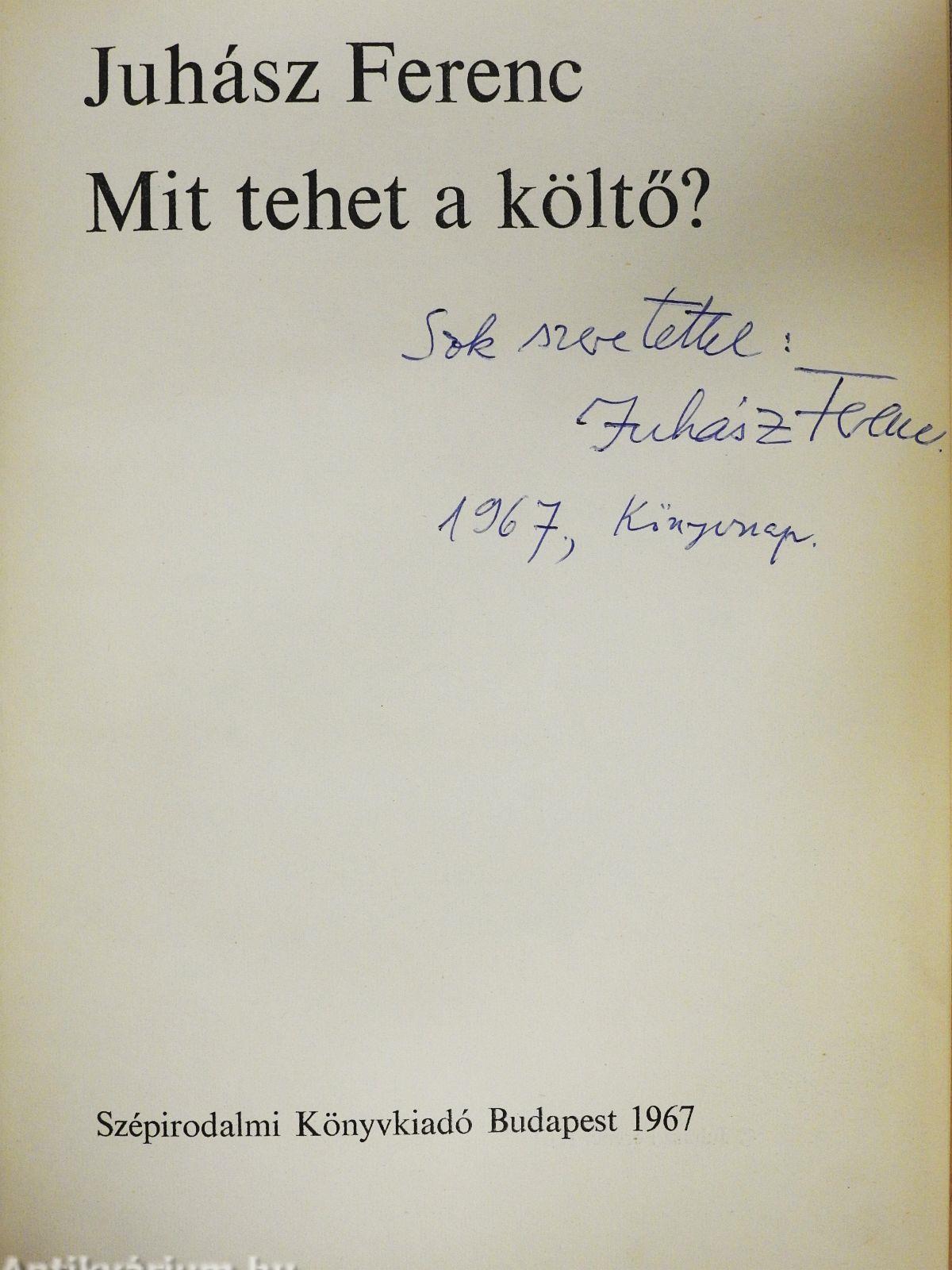 | Megjegyzés: | Juhász Ferenc szerző által dedikált példány. Egy fekete-fehér fotóval. |